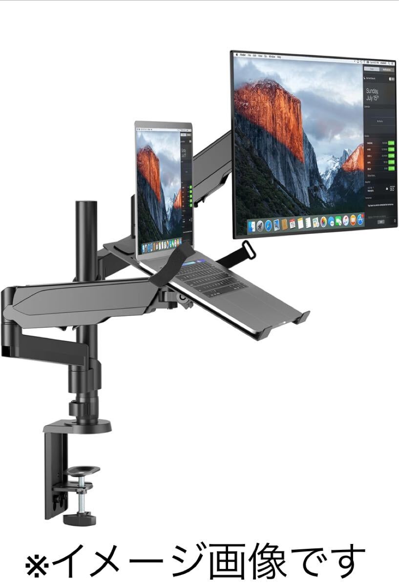 ・METIYA デュアルノートパソコンアーム ガススプリング式 2画面 ノートPCスタンド ガス圧式 17インチノートパソコン対応 32インチモニター対応 ケーブル収納 2in1 多角度調整 耐荷重1-8kg グロメット式&クランプ式 VESA75*75/100*100