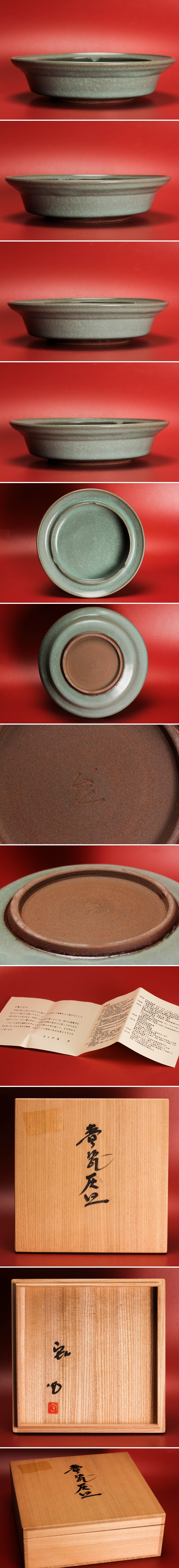 人間国宝 中島宏 青瓷灰皿 幅22.5cm 未使用美品 共箱 栞 本物保証