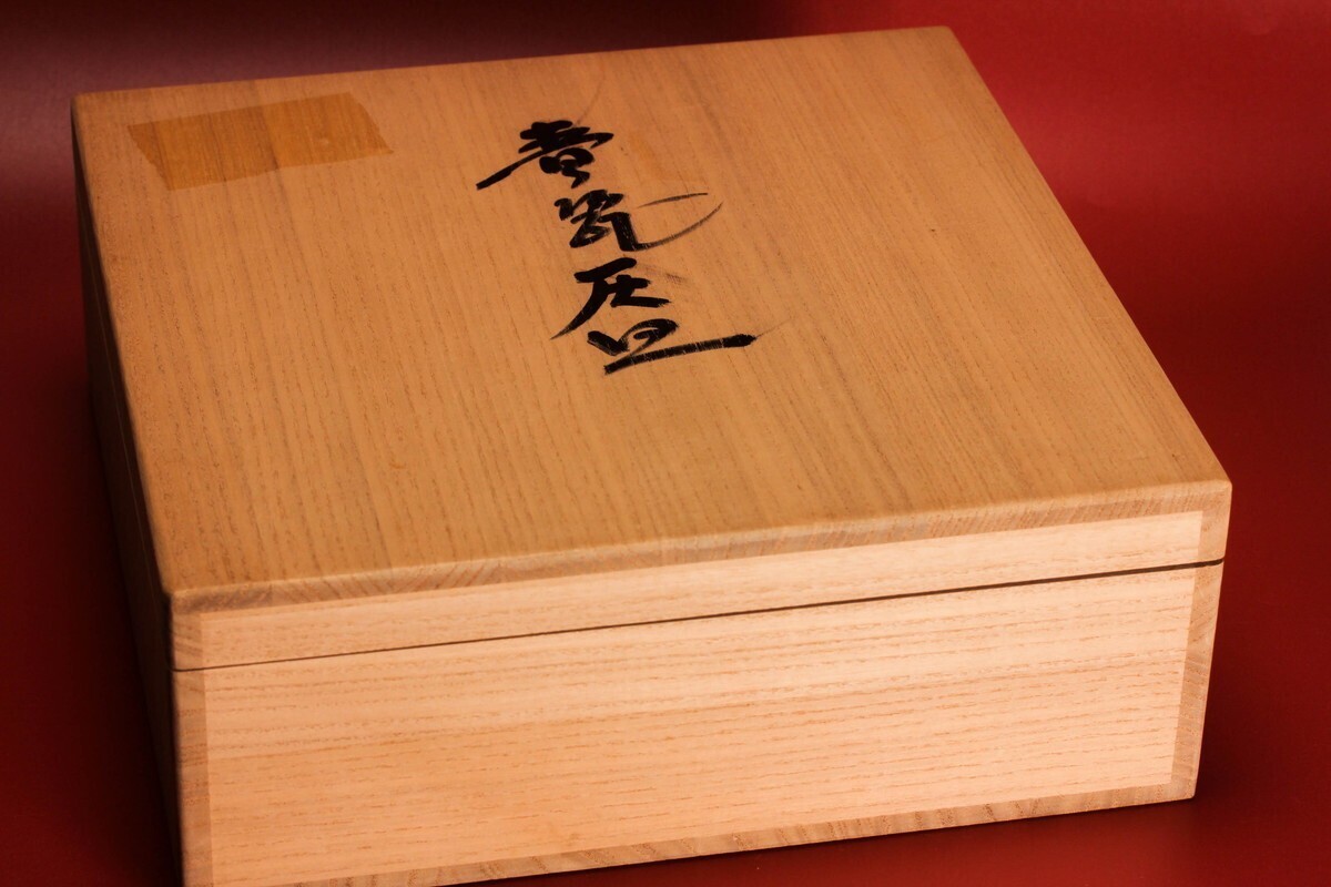 稀に他の作品名・作家名が書き付けられた木箱をお付けしております。誤認防止のため箱書き部分の画像を掲載しない場合もございます。