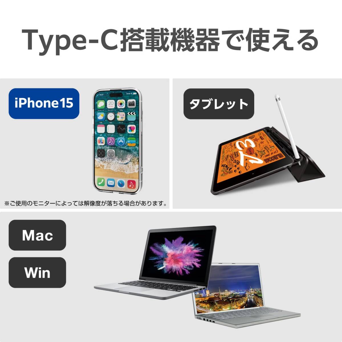 ・※HDMIからUSB Type-C(TM)への変換はできません。※音声出力に対応しています。※映像が正しく表示されない場合は、接続先のディスプレイの電源ON/OFFや各接続コネクターの抜き差しをお試し下さい。※環境、機器により正常に動作しない場合があります。※すべての機器での動作をするものではありません。※本製品で映像出力を行う際は、出力機器がDisplayPort Alt Mode対応であることをご確認ください。