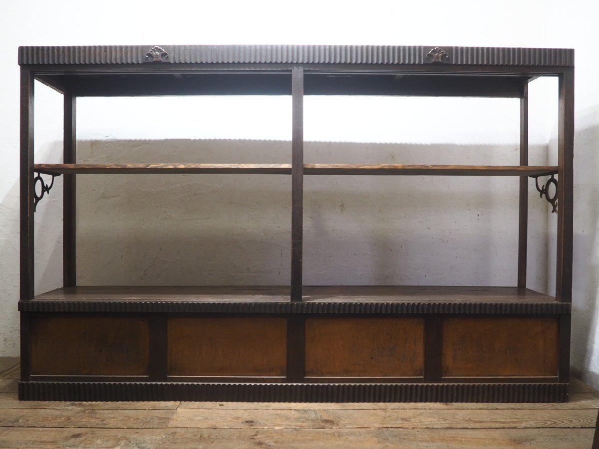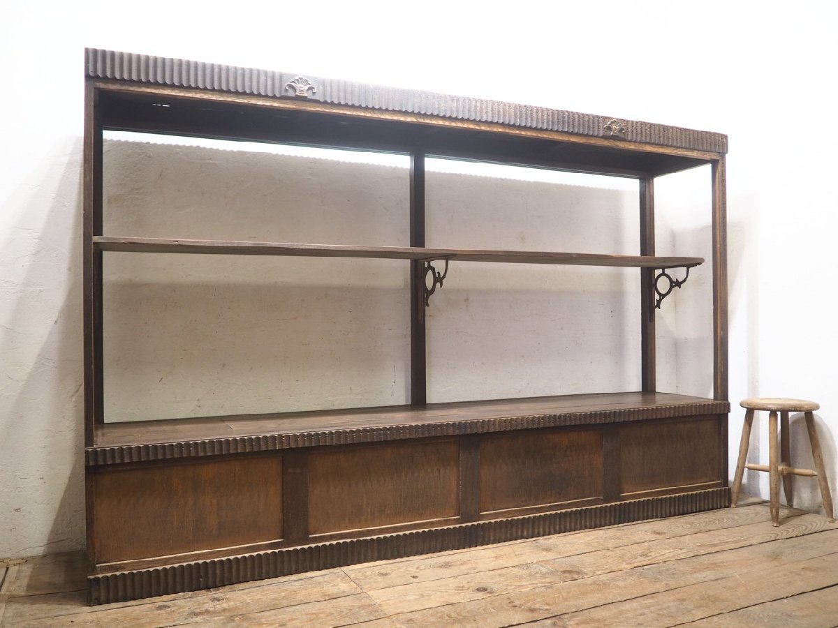 タ荷T0280◆H145,5×W228,5×D47(cm)◆特大◆アンティーク◆重厚な大きい木製飾り棚◆大型 陳列棚 展示台 レトロ 大正ロマンX(ヤG)伊