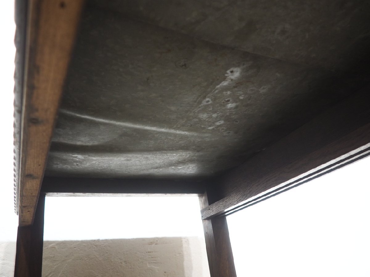 木枠に欠けや古い虫食い、小穴や天板に凹み、