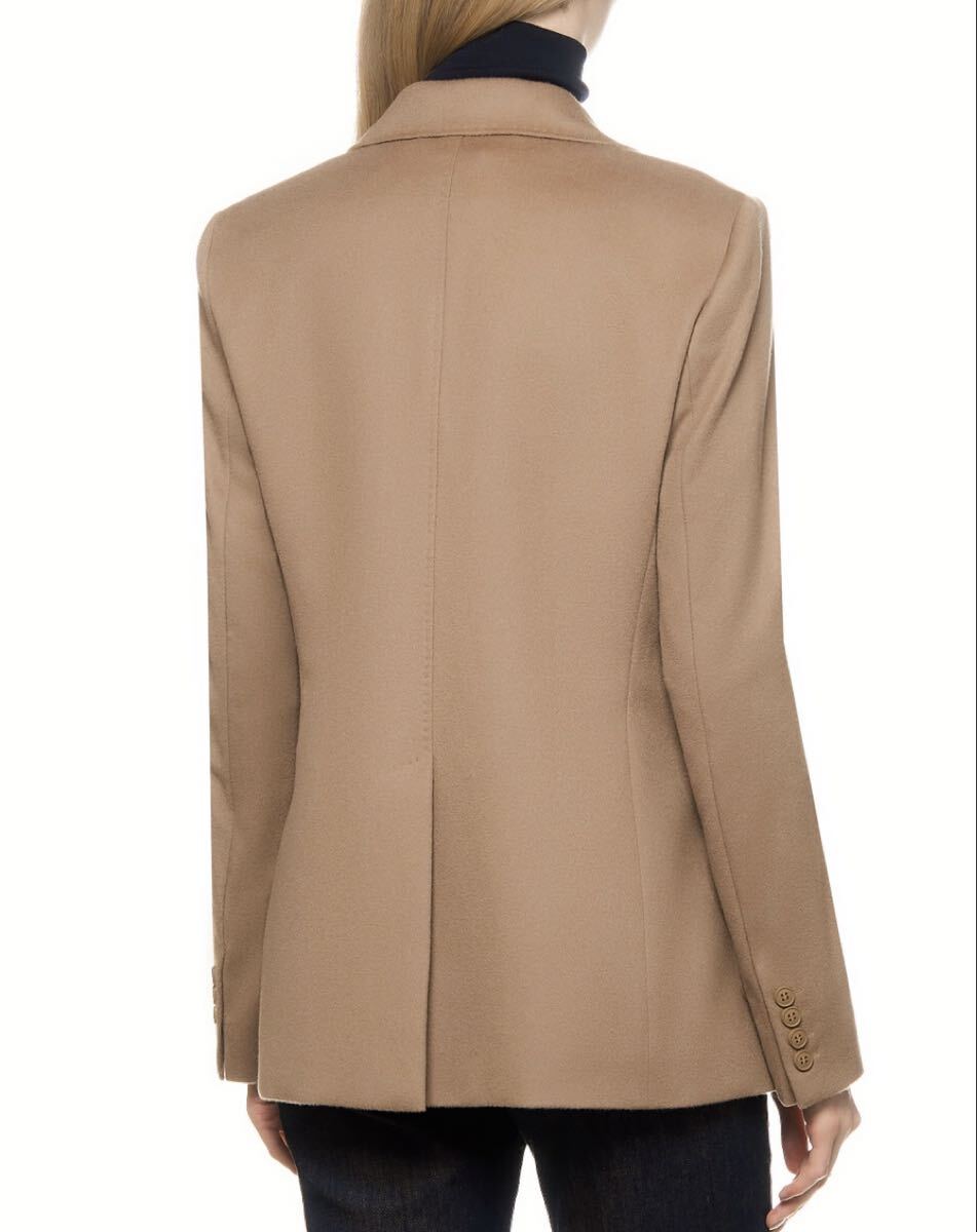 テーラードステッチを施したラペルカラーのセットインスリーブ。センターの二つの大きなパッチポケットが特徴的。