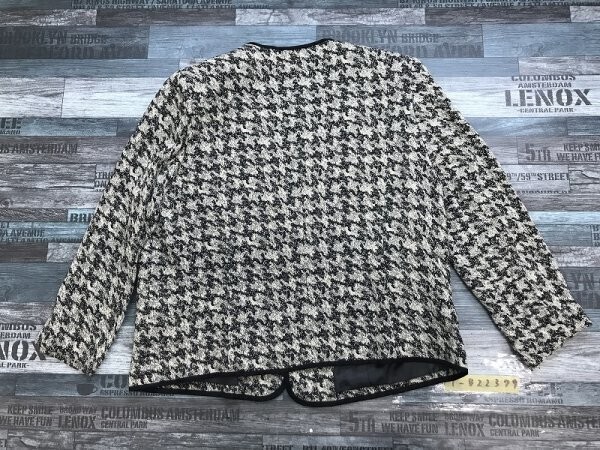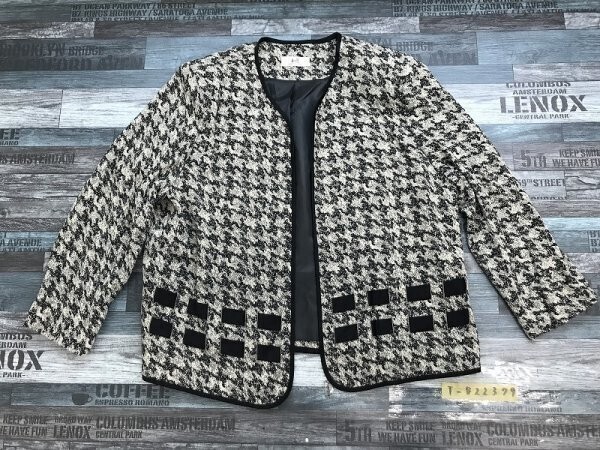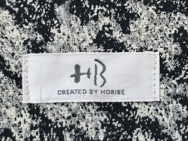 HB レディース 総柄 ノーカラージャケット 黒アイボリー です。