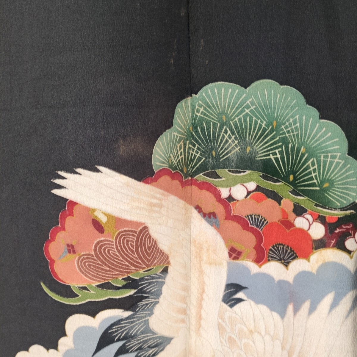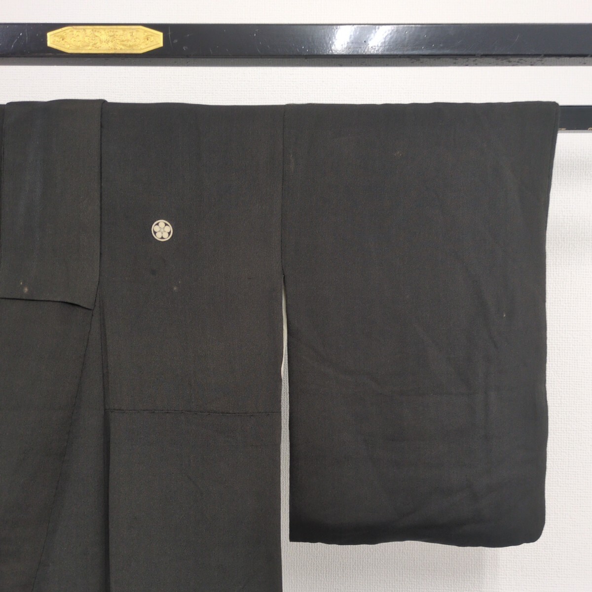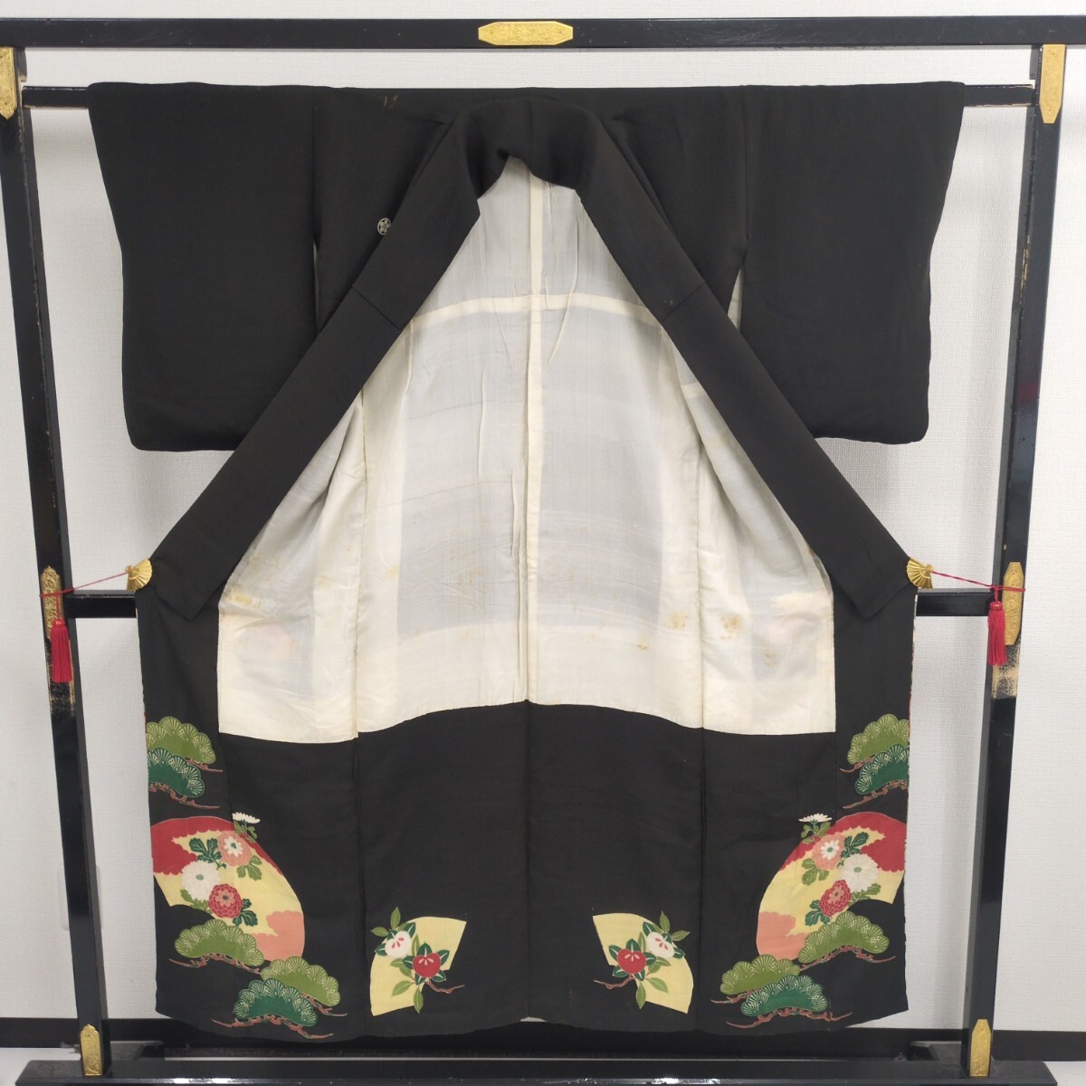 【楓】時代物 アンティーク黒留袖 正絹 風合い良い 染め 松花 袷 着物 KK-1418