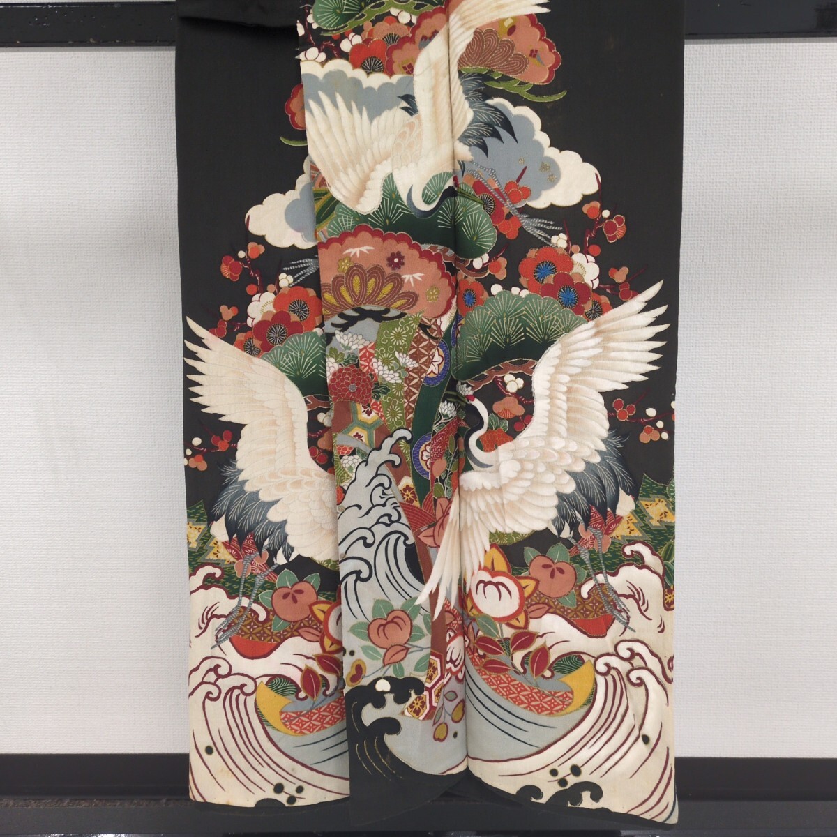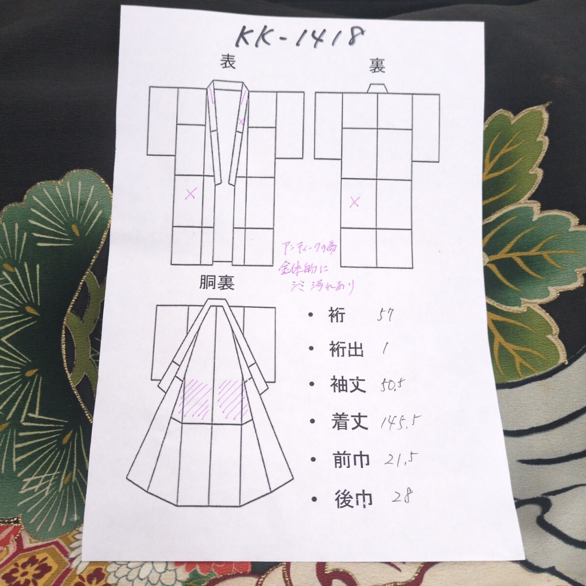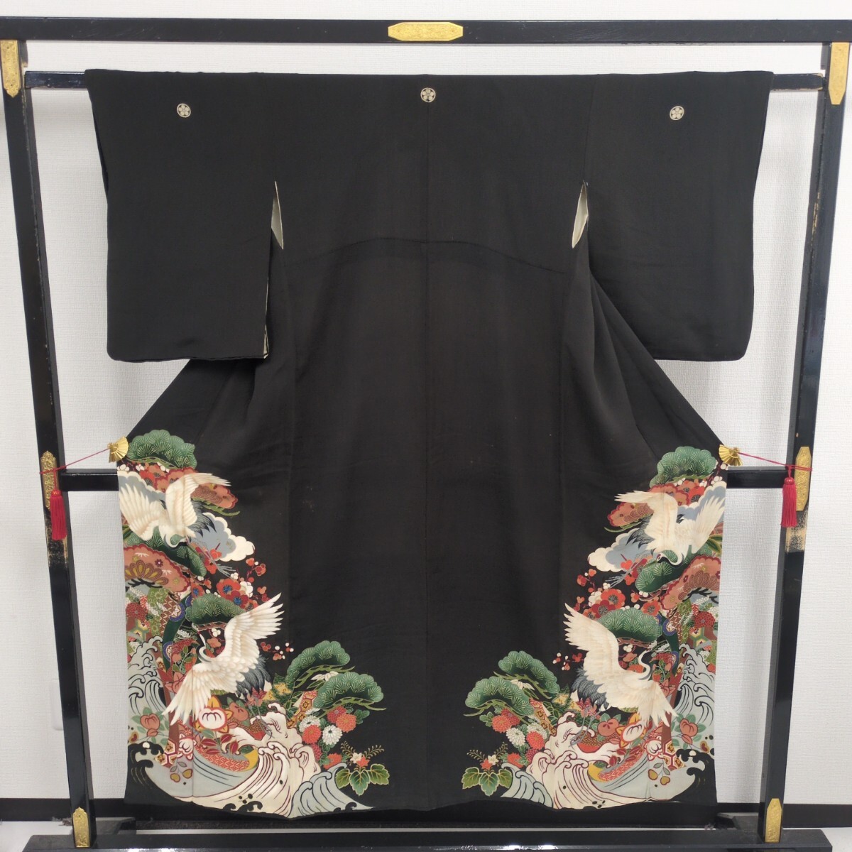 【楓】時代物 アンティーク黒留袖 正絹 風合い良い 染め 松花 袷 着物 KK-1418