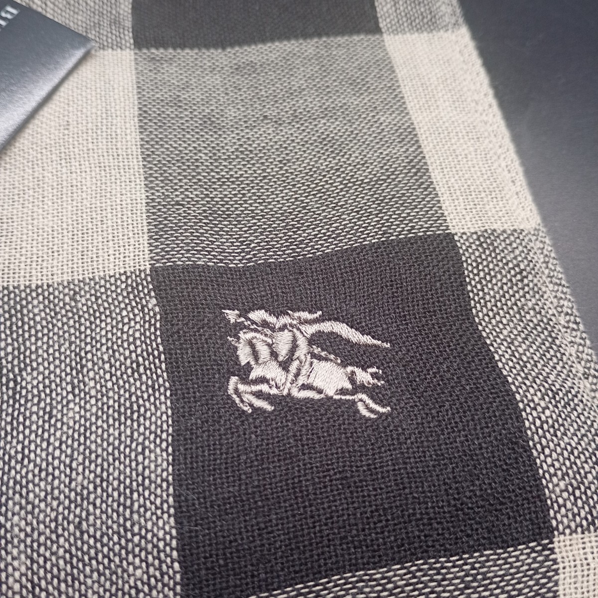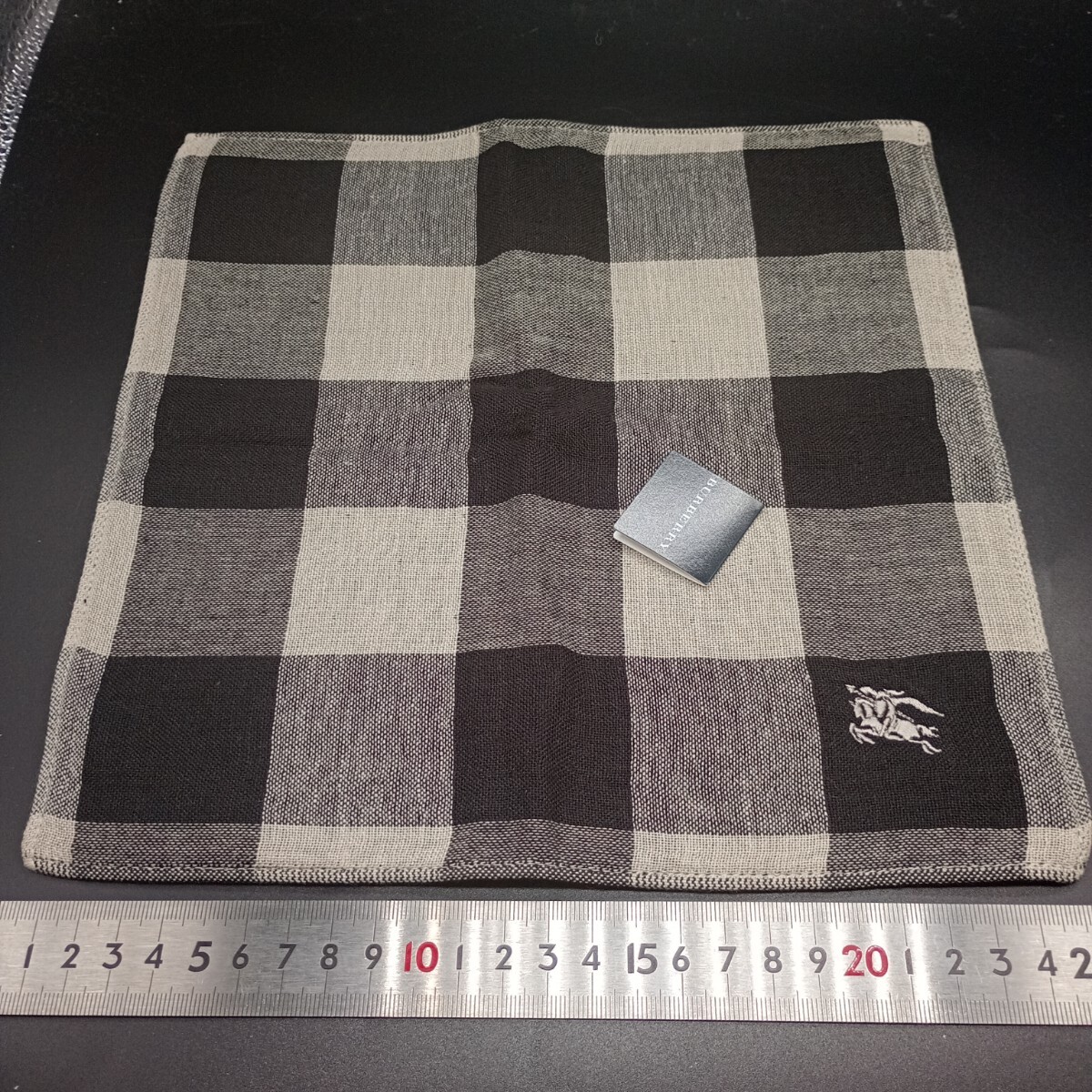 BURBERRY バーバリー タオルハンカチ ブラック グレー・ホースマーク刺繍  no.3024