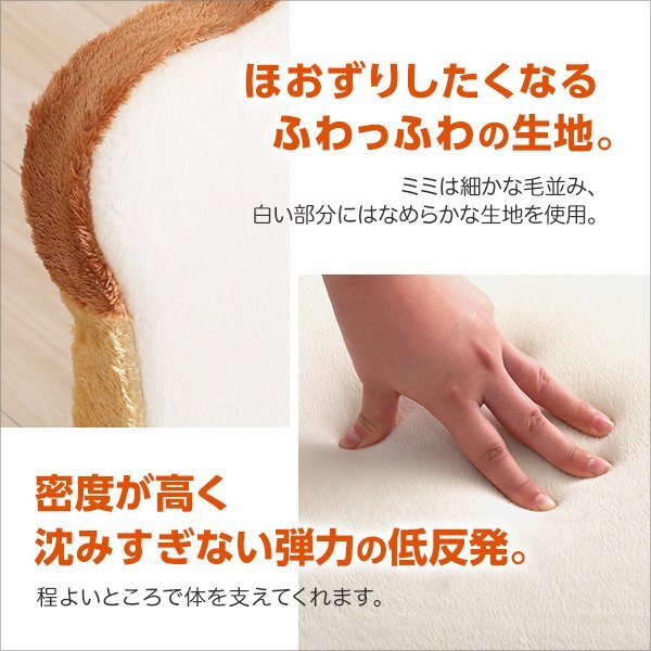 | 【ポイント】 おいしそうな食パン型クッションのBigタイプです。 安心の日本製だからギフトにも最適です。 沈み込みすぎない低反発クッションです。 肌ざわり抜群のカバーを外せば2枚切りのクッションに! ベーシックな白い食パンとトーストの2カラーがございます。 |