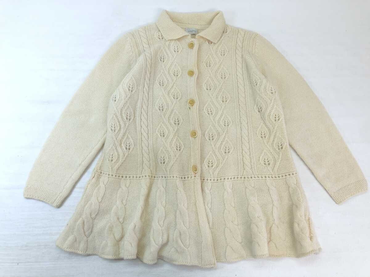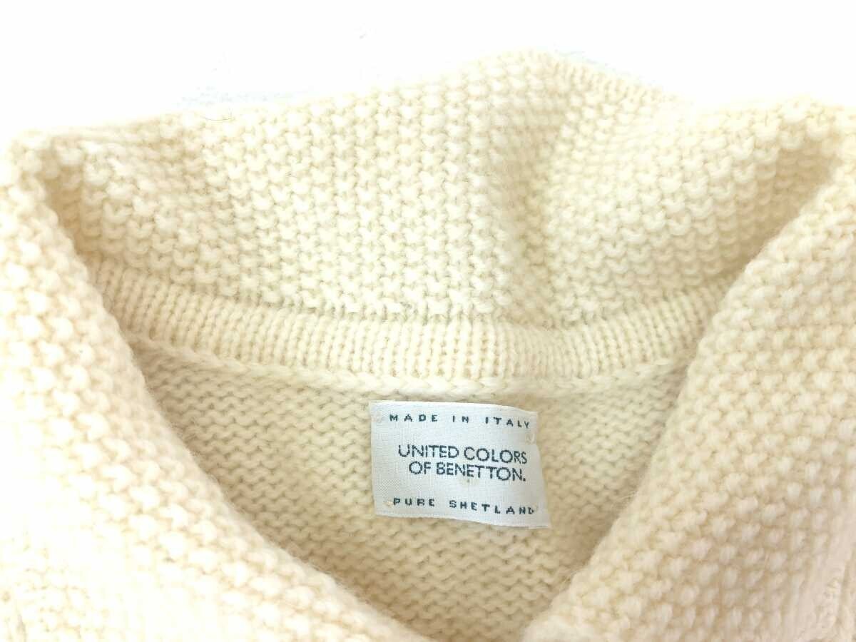 ベネトン Benetton レトロ オールド カントリー 古着 ニット ジャケット レディース イタリア製 シェットランドウール使用 オフホワイト です。