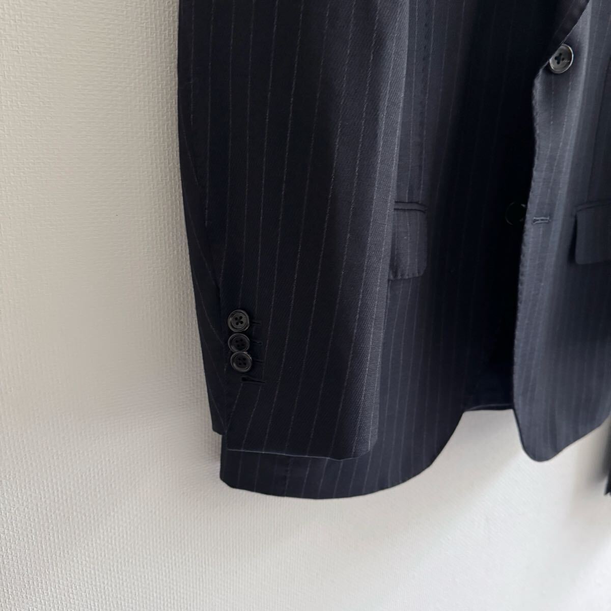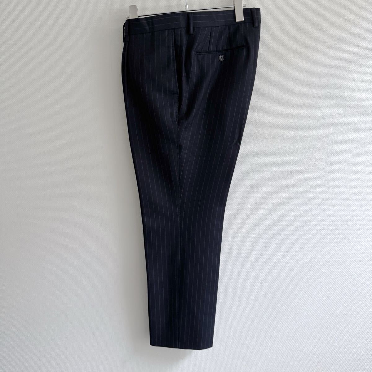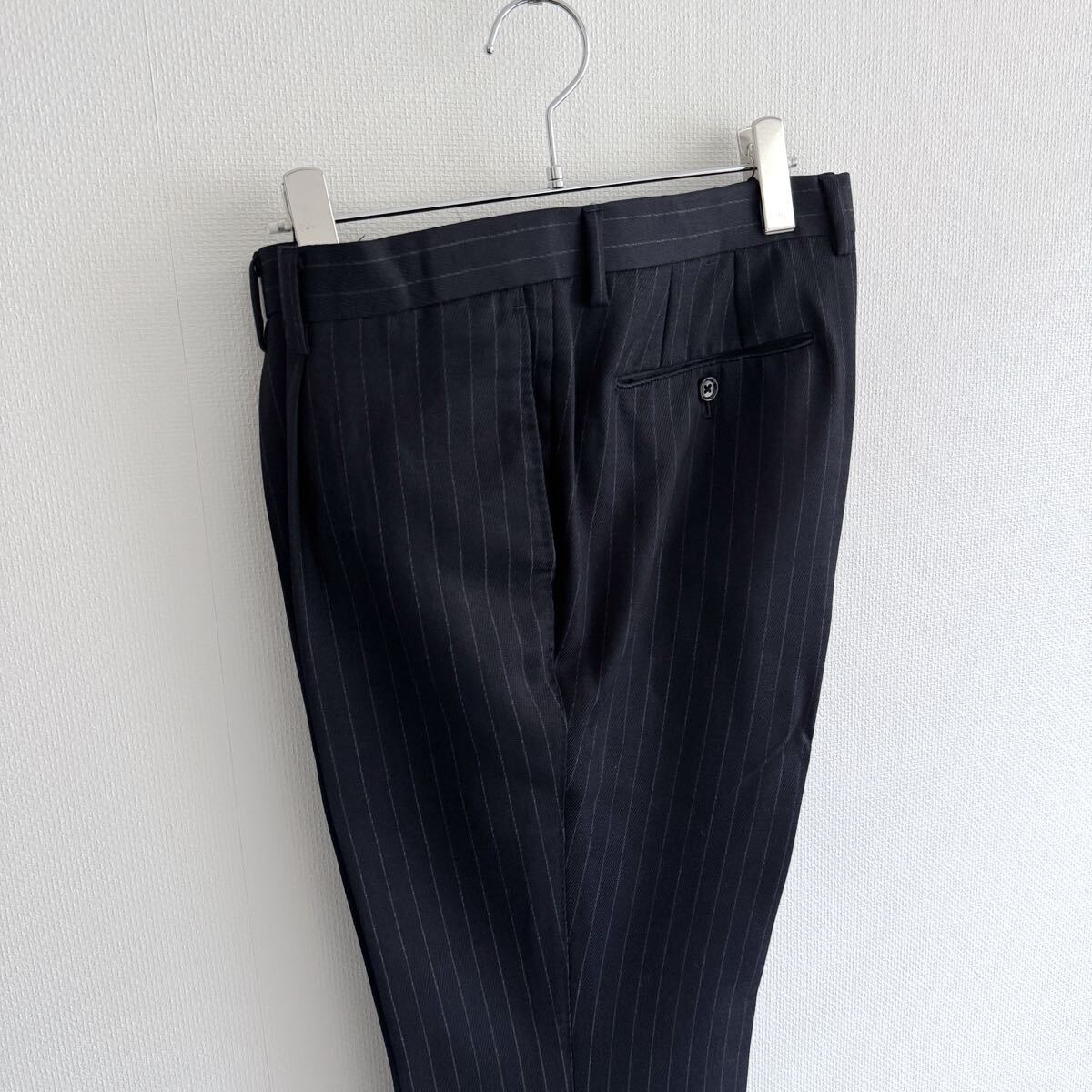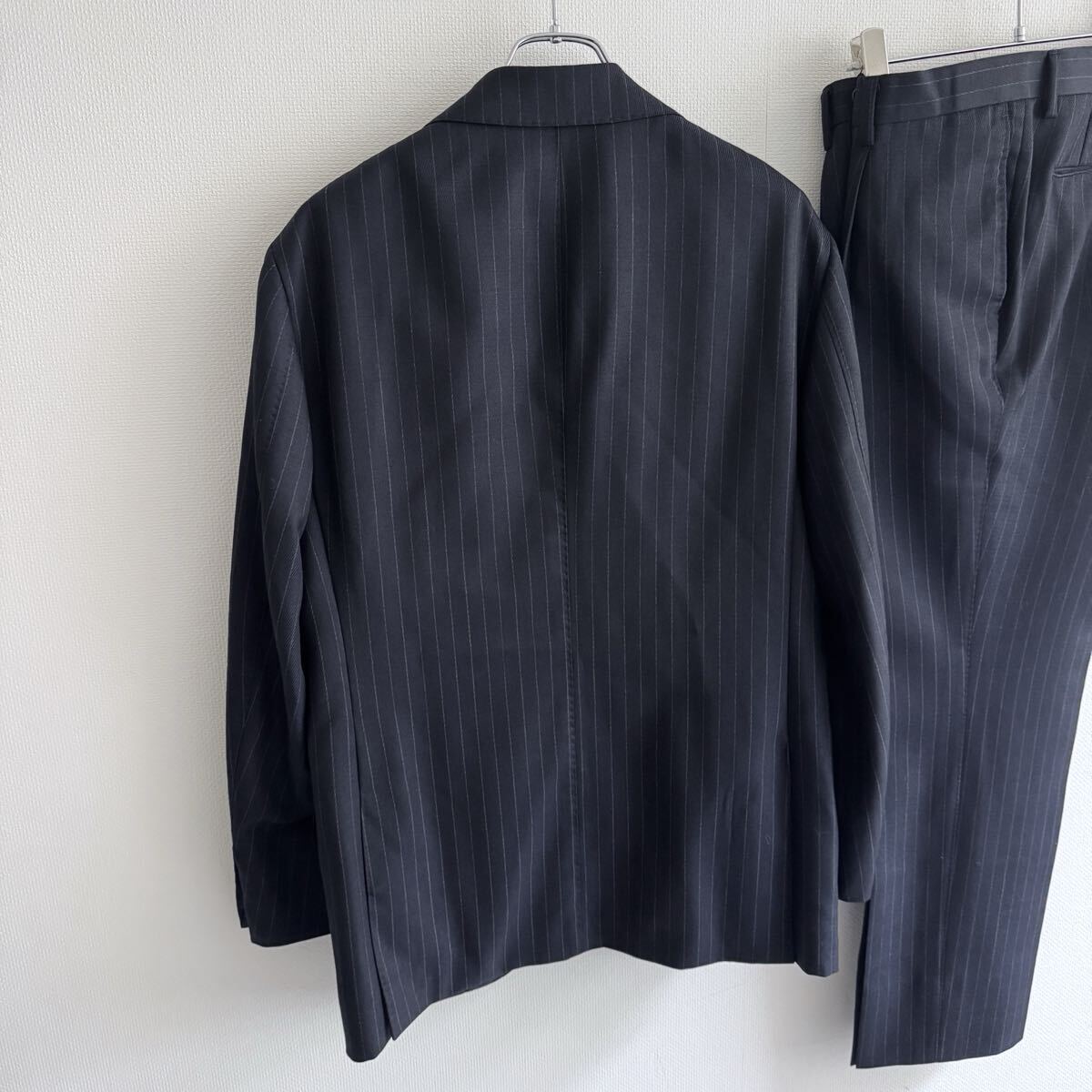 チョークストライプ柄なのですが、線が濃いわけではないので、ビジネスシーンでも使いやすい色柄です。