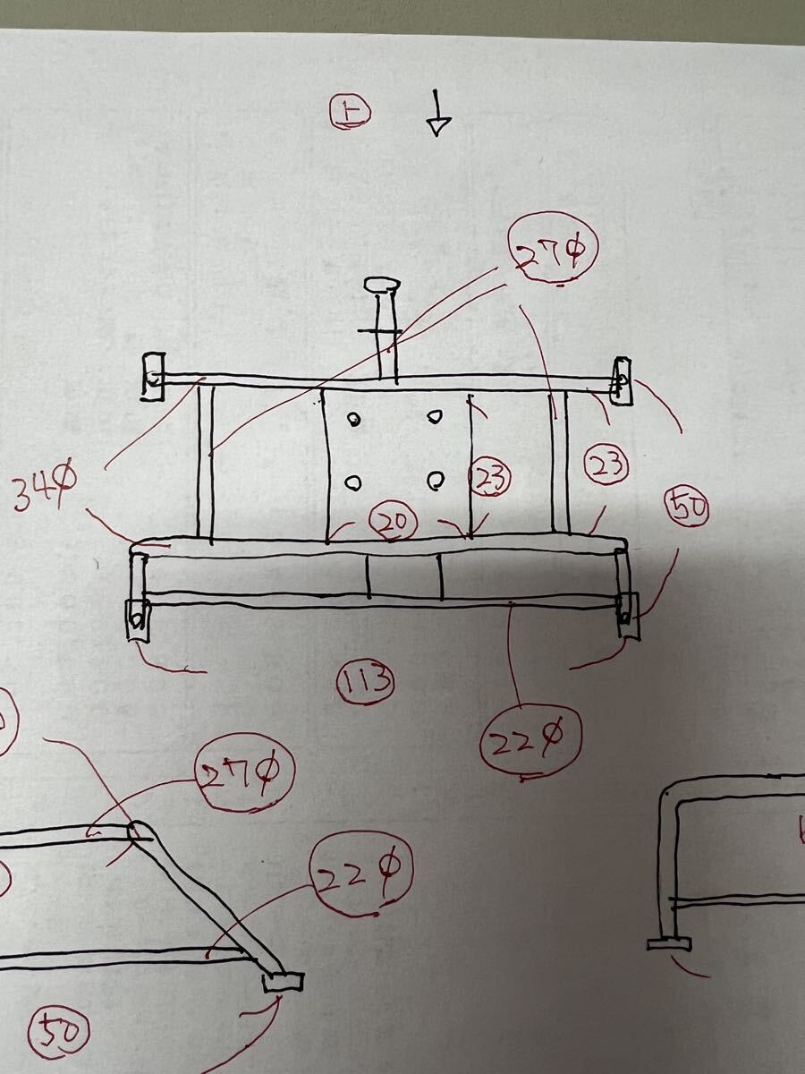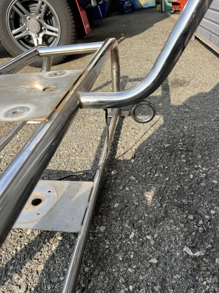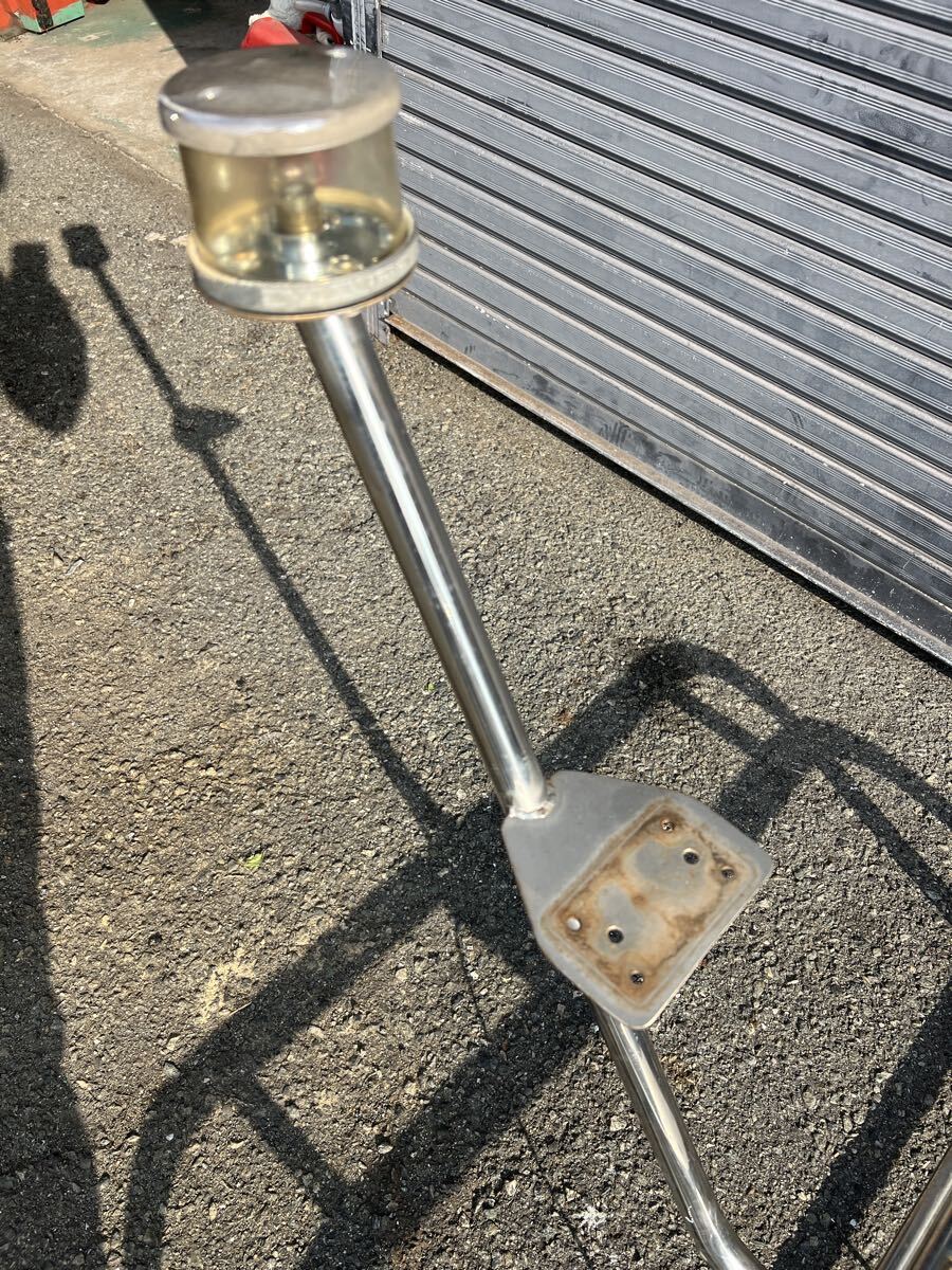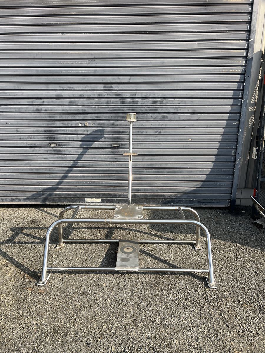 ヤマハYF27にて装着,使用していたステンレス製レーダーアーチです。停泊灯、コンパスアンテナ、レーダー、サーチライトを取り付けて使用していました。足元4箇所の取り付け部分は屋根のアーチに合わせて若干の角度がついています。落書き程度の寸法図を載せていますが、必要な箇所があれば質問にて問い合わせください。寸法図単位はおおよその数値でcmとなります。参考程度にしてください。