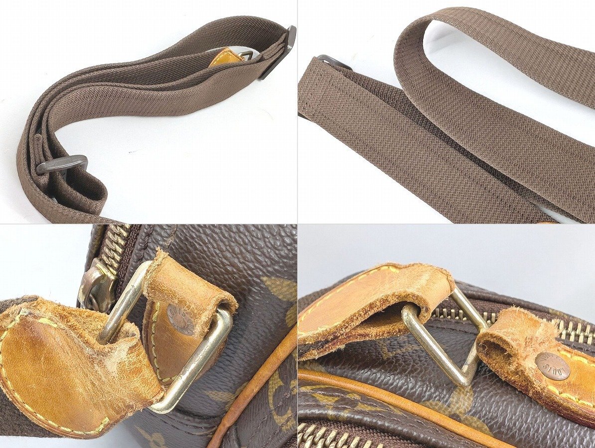 状態に難のあるジャンク出品です。 ・ストラップ付け根部分の皮革部品が片方でちぎれています。 ・反対側の皮革もヨレ、ノビが目立ち、強く引っ張るとちぎれる恐れがあります。 ・バッグ側面のパイピングの一部に擦り切れ、割れがみられます。 全体に使用感があり、各所にスレ、汚れがあります。 皮革部品のシワ、ヒビ割れ、変色があります。 金具の擦り傷、メッキ剥がれがあります。 写真や記載にない不具合があるかもしれませんが、現状渡しにてご容赦ください。 あくまで返品不可のジャンク品となります。 説明文・写真をご確認のうえ、納得された方のみご入札ください。 ノークレーム・ノーリターンでお願いいたします。 |