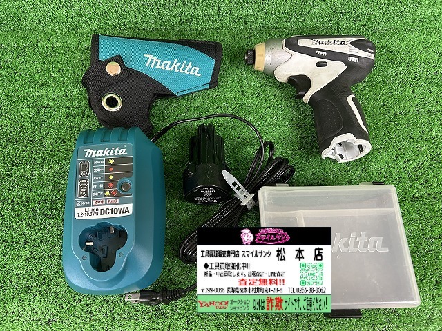 | 商品説明 | ## マキタ TD090DWXW インパクトドライバ 中古 ご覧いただきありがとうございます。 マキタの10.8V充電式インパクトドライバ TD090DWXW 中古品です。 【商品状態】 外観には使用に伴う傷や汚れがございます。 動作確認済みで、問題なく使用できますが、バッテリーの消耗具合は保証できません。 中古品であることをご理解の上、ご入札ください。 【付属品】 本体・ バッテリー (1個 残量不明)・ 充電器 ケース・ホルスタ ※こちらの商品は店頭で販売もしており、稀に入札中に販売済となる場合がございますのでご了承くださいませ。 TMO 6KA93は当店の管理番号です。 発送方法 発送時はエアパッキン、ダンボール紙などを利用しての 簡易包装にて発送となります。 【詐欺サイトにご注意ください】 日頃より当店をご利用いただき、誠にありがとうございます。 この度、当社の製品が、当社とは関係のない詐欺サイト上で掲載されていることを確認いたしました。当社の正規販売はYahoo!ショッピングおよびYahoo!オークションのみであり、これら以外のサイトとは一切関係がございません。 【お客様への重要なお願いとご注意】 詐欺サイトでのご購入は、個人情報や金銭の被害に繋がる恐れがあります。 不審なサイトには絶対にアクセスせず、個人情報の入力やご注文はお控えください。 被害に遭われた際は、最寄りの警察署または消費者センターにご相談ください。 万が一被害に遭われてしまった場合、誠に申し訳ございませんが、当社では被害に関する対応はいたしかねますので予めご了承ください。 お客様にはご心配をおかけいたしますが、ご理解ご協力のほどお願い申し上げます。 ★★★工具専門スマイルサンタ松本店 ヤフオク出品中です!!★★★ ★★★『工具専門スマイルサンタ松本店のヤフオクはこちら』★★★ 【ゆうパック 全国800円 (沖縄:1400円)】 【ヤマト運輸 全国1100円 (沖縄:1600円)】 どちらか一方を落札後、ご選択頂きます。 | 出品店舗 | スマイルサンタ 松本店 |