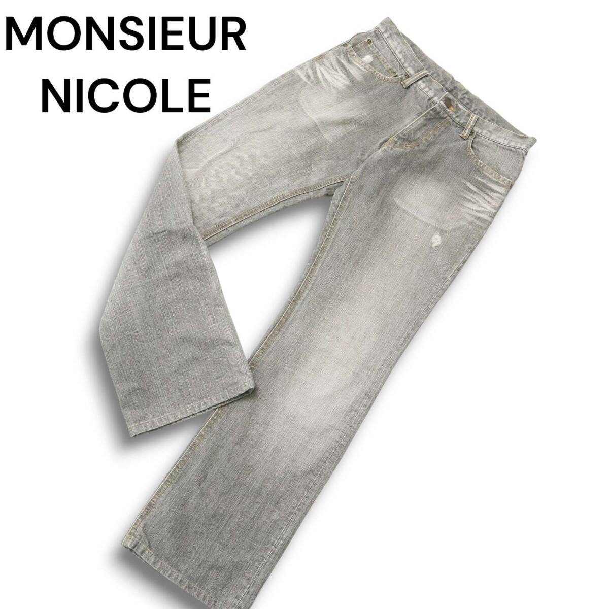 MONSIEUR NICOLE ムッシュ ニコル 通年 ダメージ加工★ ブーツカット デニム パンツ ジーンズ Sz.44 メンズ 灰 グレー