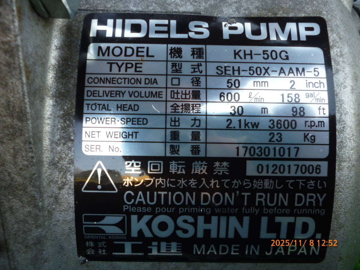 工進 コーシン KH-50G KH-50 50mm HIDELS PUMP ハイデルスポンプ エンジンポンプ 水中ポンプ ホンダ GX120 GC3NT ガソリン 潅水 灌水 排水