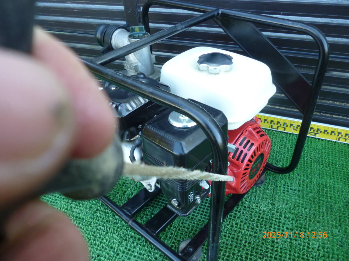 画像参照下さい。プラグ火花出ます。圧がありスターター紐引けエンジン始動しました【画像10枚目、マフラーから煙が見えます】