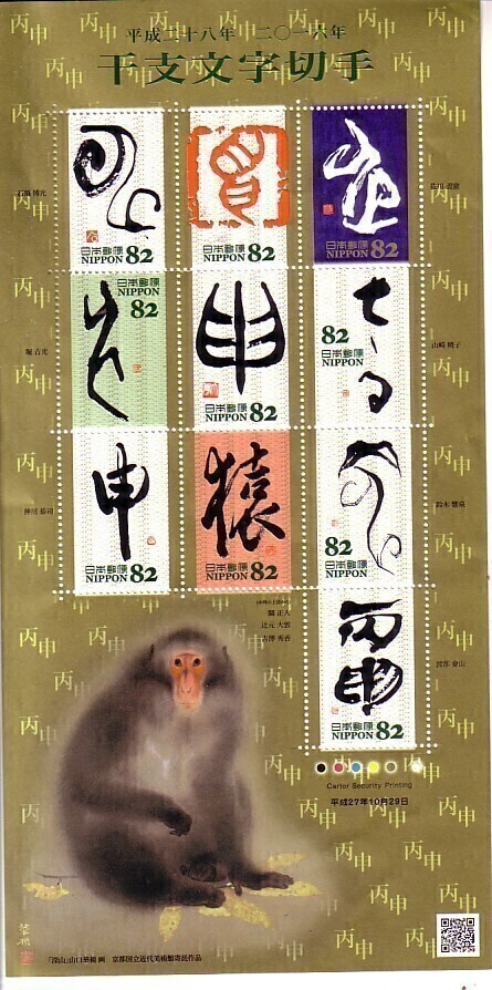 「干支文字切手 平成二十八年」の記念切手です(82円切手X10枚)。送料は普通便140円(郵送 複数同梱発送では180円)になります。