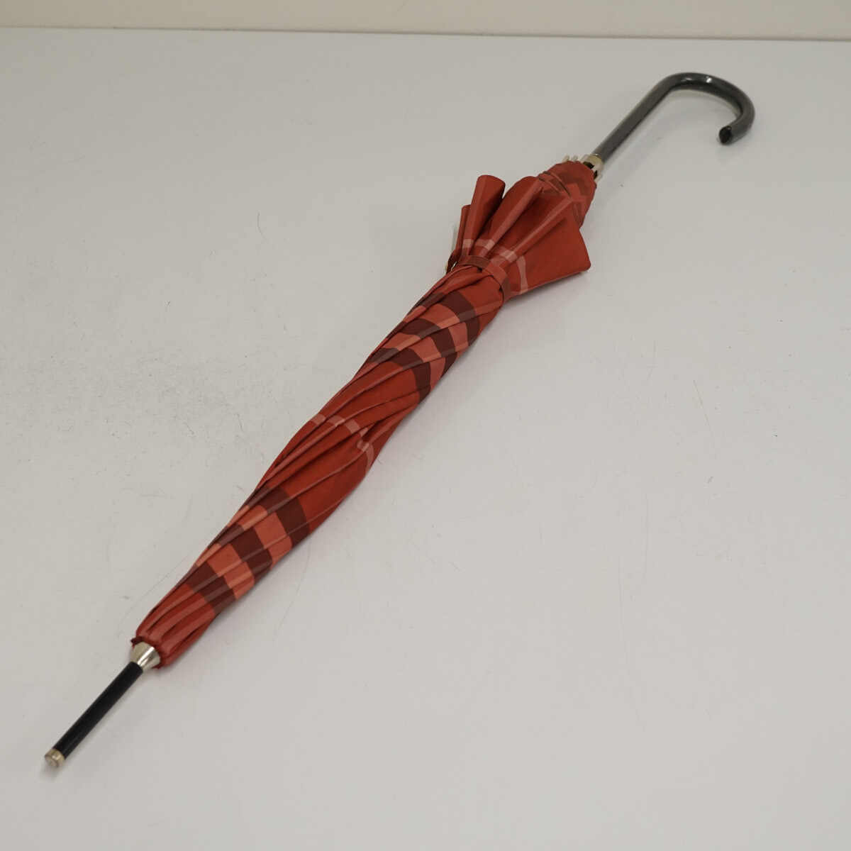 傘 BURBERRY バーバリー USED美品 チェック レッド ジャガード ジャンプ 高級 ブランド グラス骨 60cm S3333