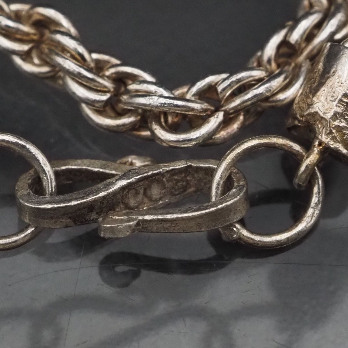 H535 ヴィンテージ 800刻印 ブレスレット スクリュー ロープチェーン デザイン シルバー