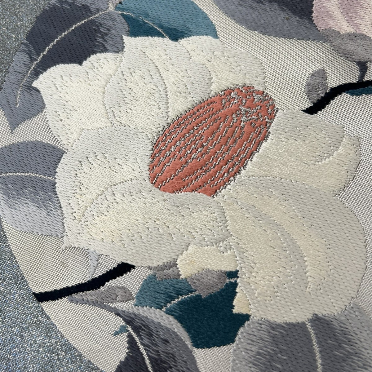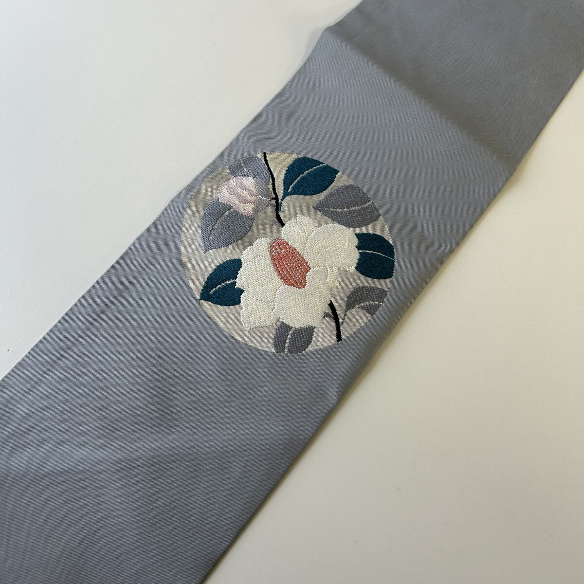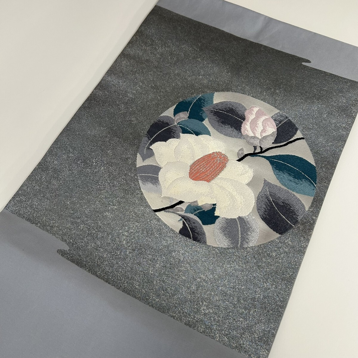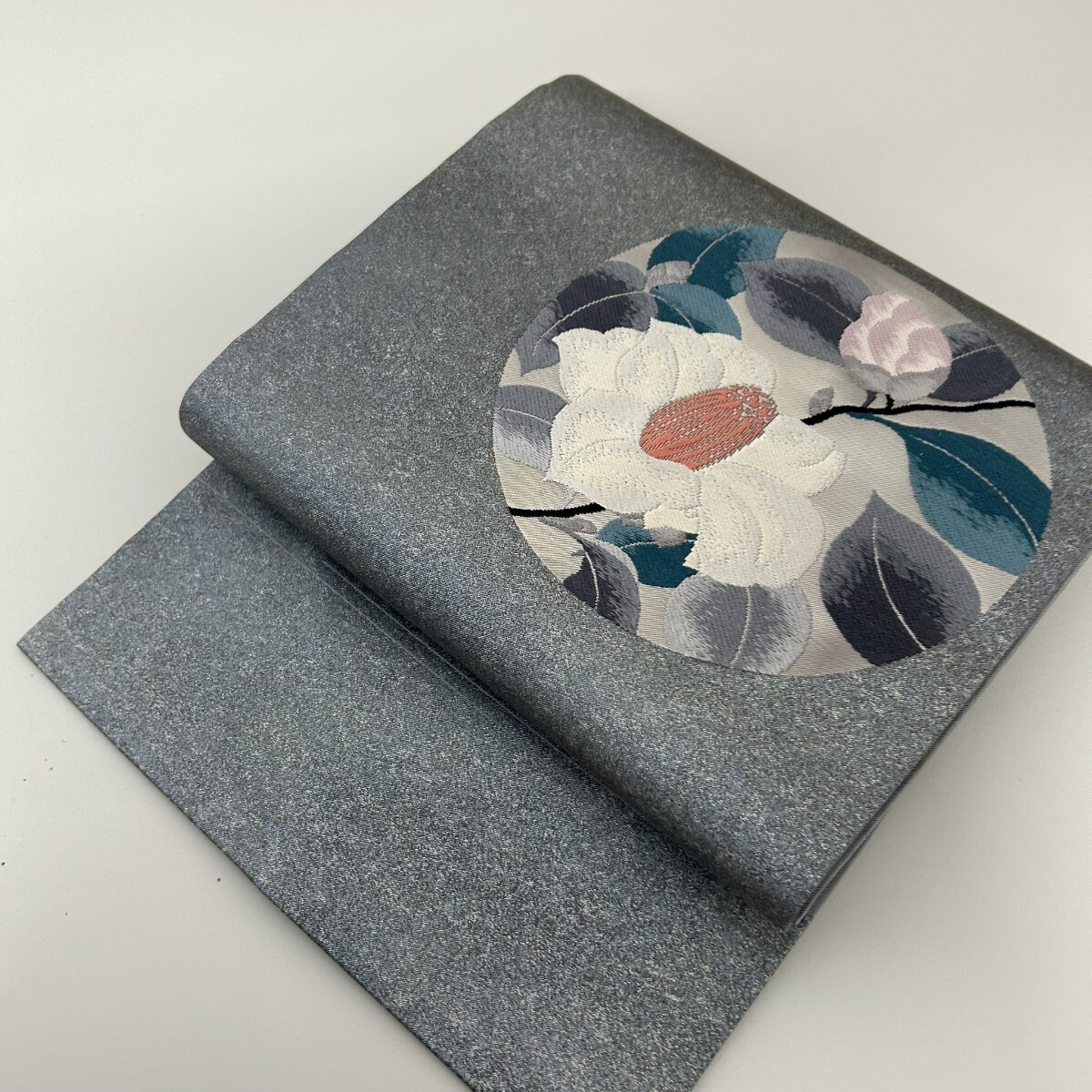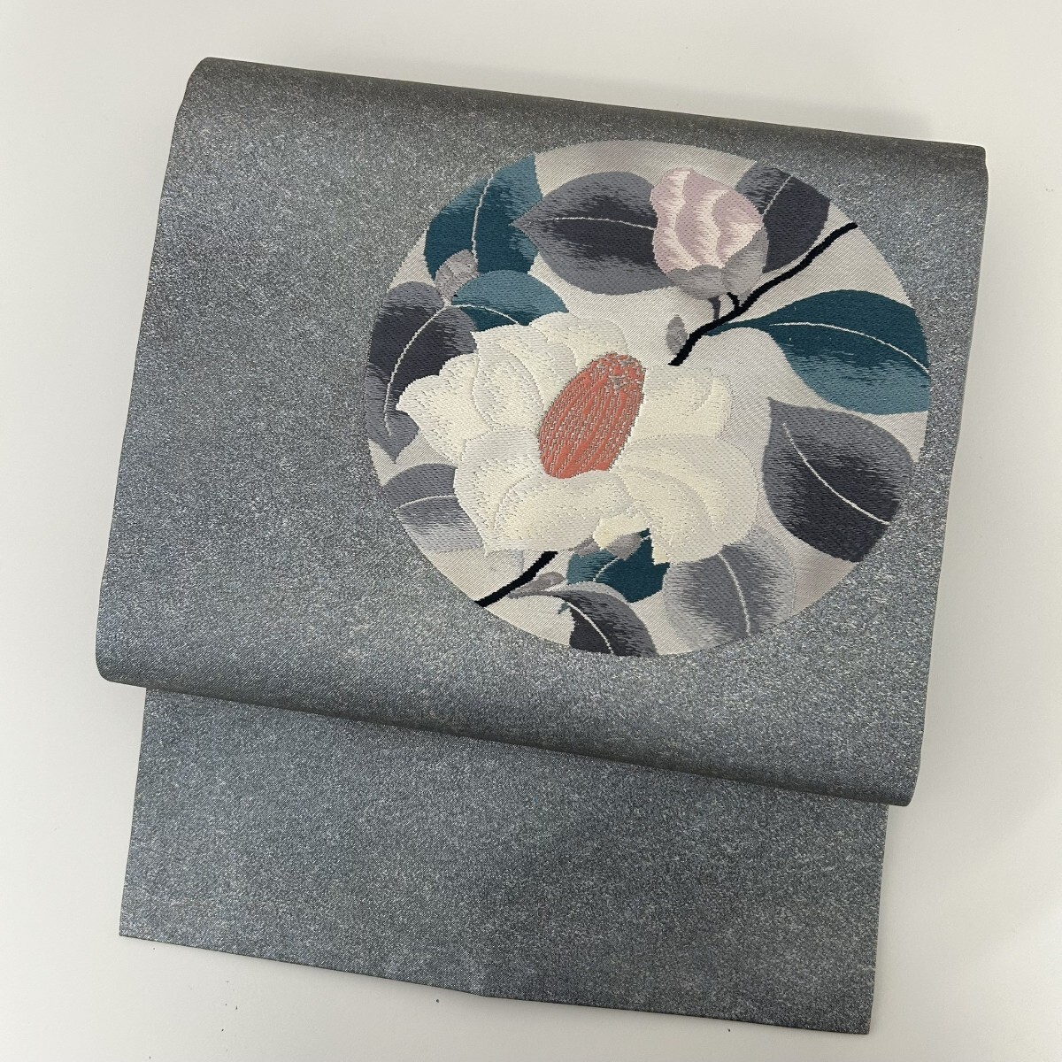 【楓】名古屋帯 正絹 丸に織柄の花 九寸 KK-1470