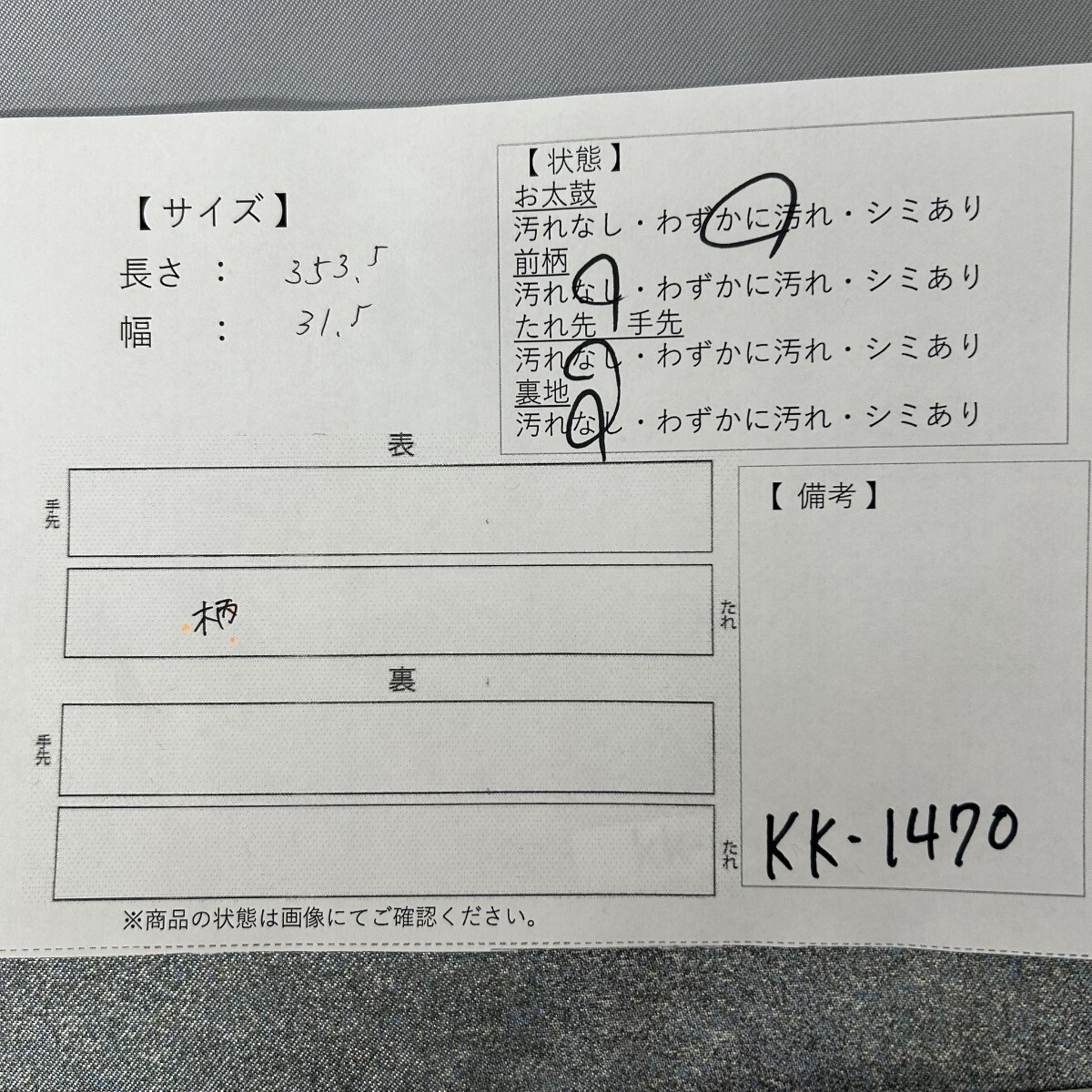 画像内に検品表を掲載しております。