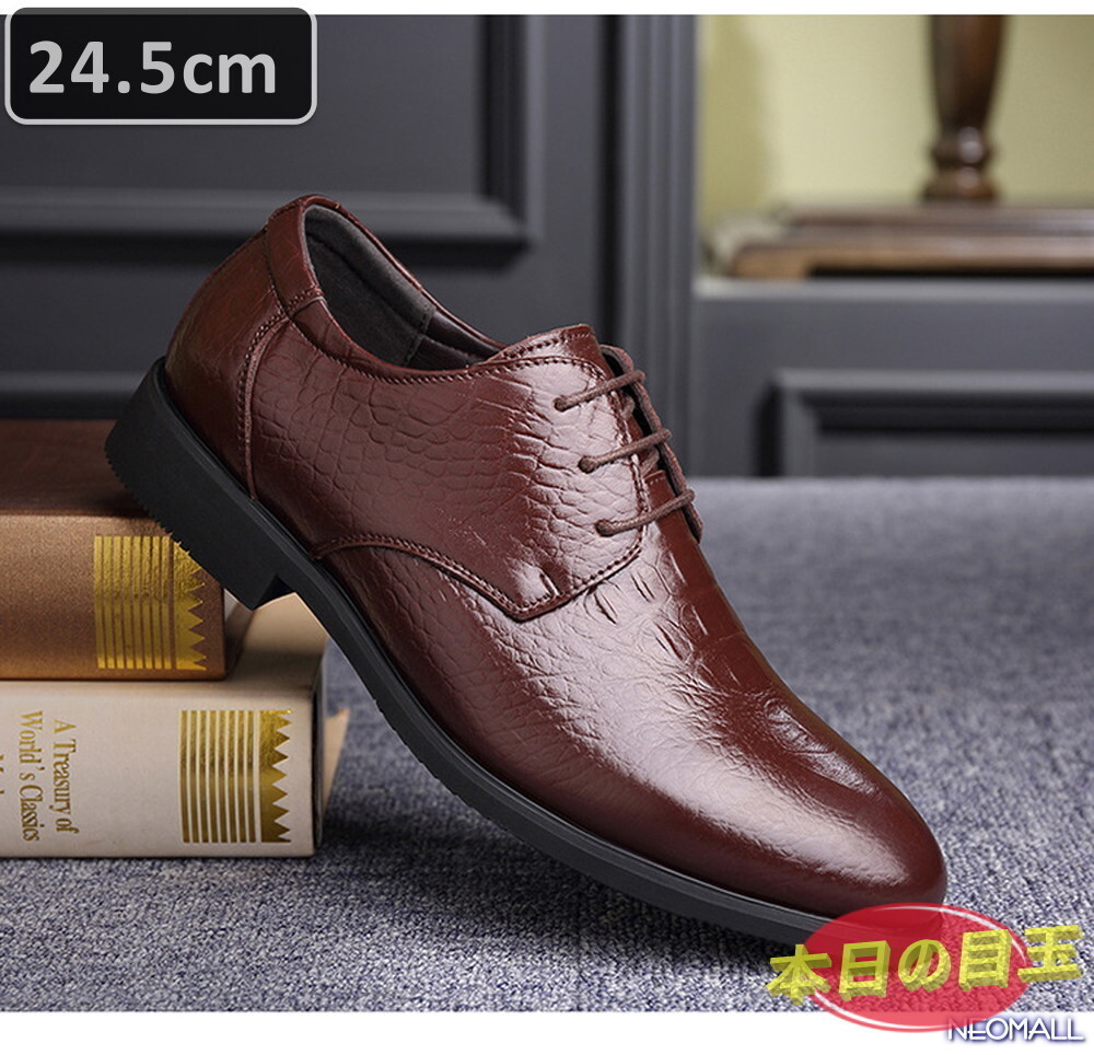 本日の目玉 ☆ メンズ ビジネス レザー シューズ ブラウン サイズ 24.5cm 革靴 靴 カジュアル 屈曲性 通勤 軽量 【432】