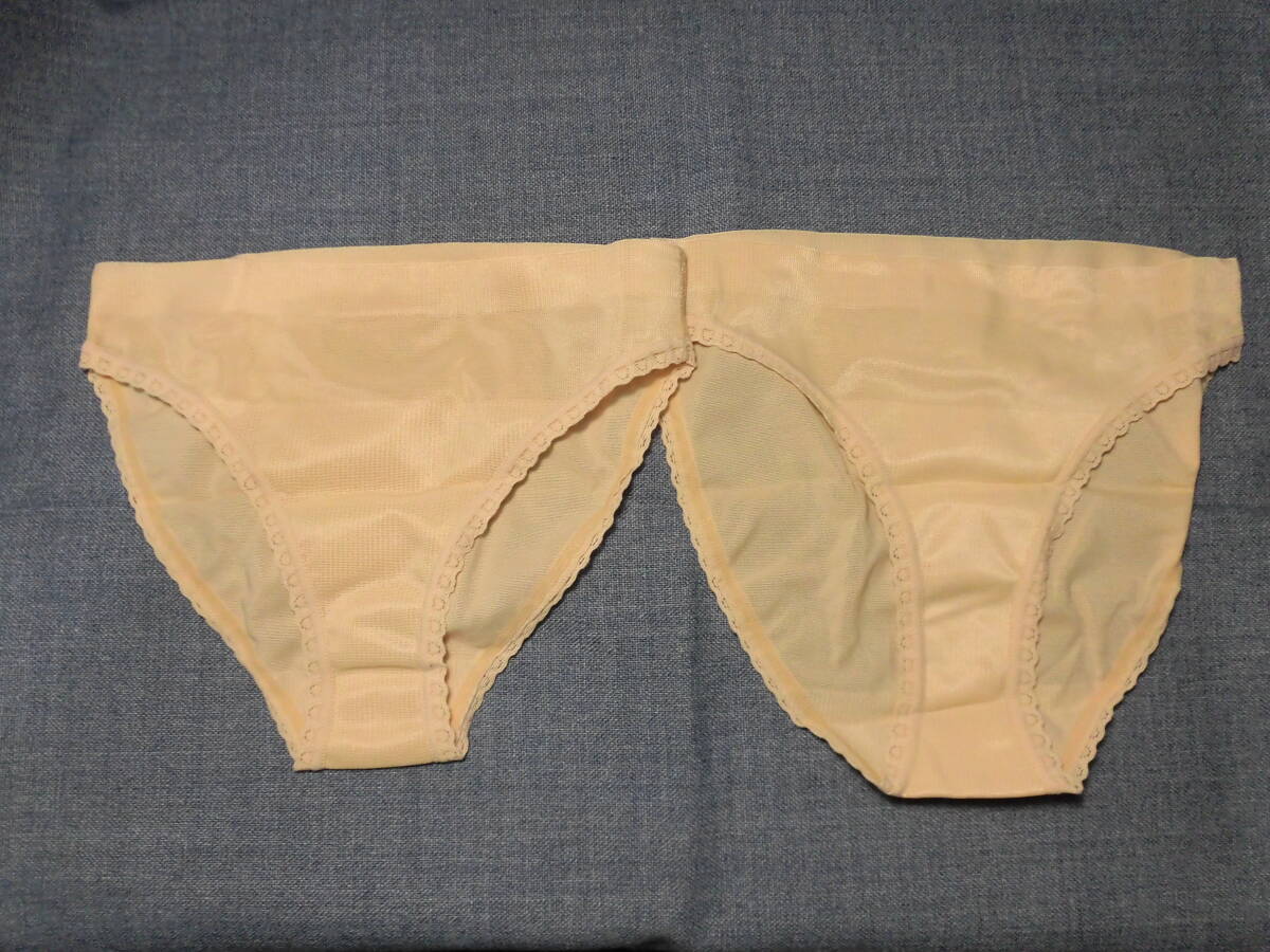 レトロ 2枚セット 日本製 フリーサイズ 女子用 スイムサポーター ショーツ ベージュ 光沢 つるつる スクール 長期保管品 5543