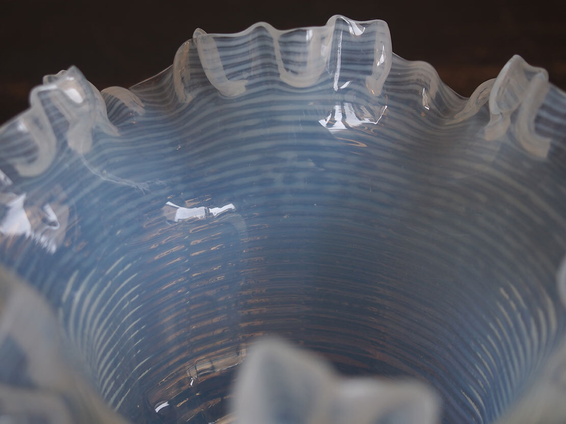 螺旋模様のオパールガラス フリルガラス ランプシェード電笠 直径14.1cm 大正ロマン オパールセント ヨーロッパ フランスアンティーク/K298 ●サイズ:高8.5cm, 直径14.1cm 195g ●材質:ガラス ヨーロッパのアンティーク市にて入手、1930年ぐらい? 美しいハンドメイドのガラスシェード。ソケット挿入口外径5.7cm くびれ部分外径4.9cm くびれ部分内径4.6cm。うっすらと青みを帯びたオパールガラス。矢印部分をご覧ください、1箇所欠けがあります、フリルに紛れているのでよく観察しないとわからない程度のものです。他には特に目立つダメージの無い良い状態。日本の規格のソケットE26がご利用いただけます。参考資料、リメイクなどにどうぞ。 詳細は写真でご確認いただけます。古い物だと言う事をご理解の上のご入札をお願い致します。材質及び年代の判定は困難な場合があります、差異についてはあらかじめご了承下さい。 ー ー ー ー ー ー ー ー ー 記載にない方法での発送はいたしません。 発送をお急ぎのお客様にはご希望に添えない場合があります。 ー ー ー ー ー ー ー ー ー ●その他 ヤフオクの小さな写真では商品を詳細にご覧頂く事ができません。リンク写真で質感ダメージ等の写真を数多くアップしています。必ず全部の写真がよく見える環境でご覧下さい。本商品は時代を経た古い物です。写真や説明で記載できないようなキズやシミ、古い物特有の臭いのある物もあります。できる限り詳細に説明するよう努力しておりますが、ご理解頂ける方、神経質で無い方、埃によるアレルギー等の無い方のご入札をお願いします。 必ず当店の自己紹介欄と落札後の落札通知をご覧下さい。 土曜日曜日は基本的には定休日です。メール、質問への回答は月曜日にいたします。 ご連絡は落札後48時間以内にお願いします。ご連絡が無い場合はお客様都合によるキャンセルとさせて頂きます。落札から1週間(土日祝日含む)経過してもご入金が無い場合も同様といたします。ご注意下さい。 特に評価「0」の新規のお客様、および 私とのお取り引きが初めてのお客様は遅れる事の無い様にお願い申し上げます。 評価の悪いお客様のご入札は取り消す場合があります。 入札の取り消しおよびキャンセルは固くお断りいたします。 自己紹介欄には急な連絡事項等も記載してあります、ご入札前に必ずご覧下さい。落札後には『落札通知』の内容も必ずご確認ください。 当オークションをご覧下さりありがとうございました。 Accept Paypal payment |