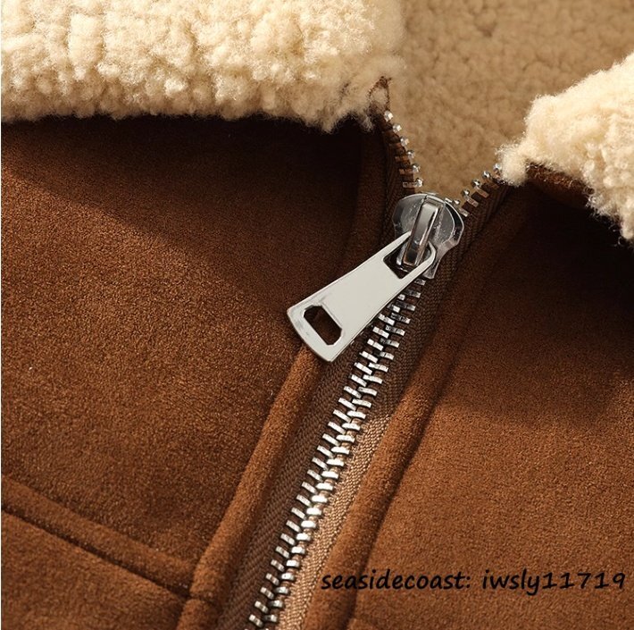 極美品◆ムートンコート メンズ ブルゾン ジャンバー 超防寒 厚手 暖かい 毛皮 ファーコート ジャケット アウター ライダース ブラウン 2XL