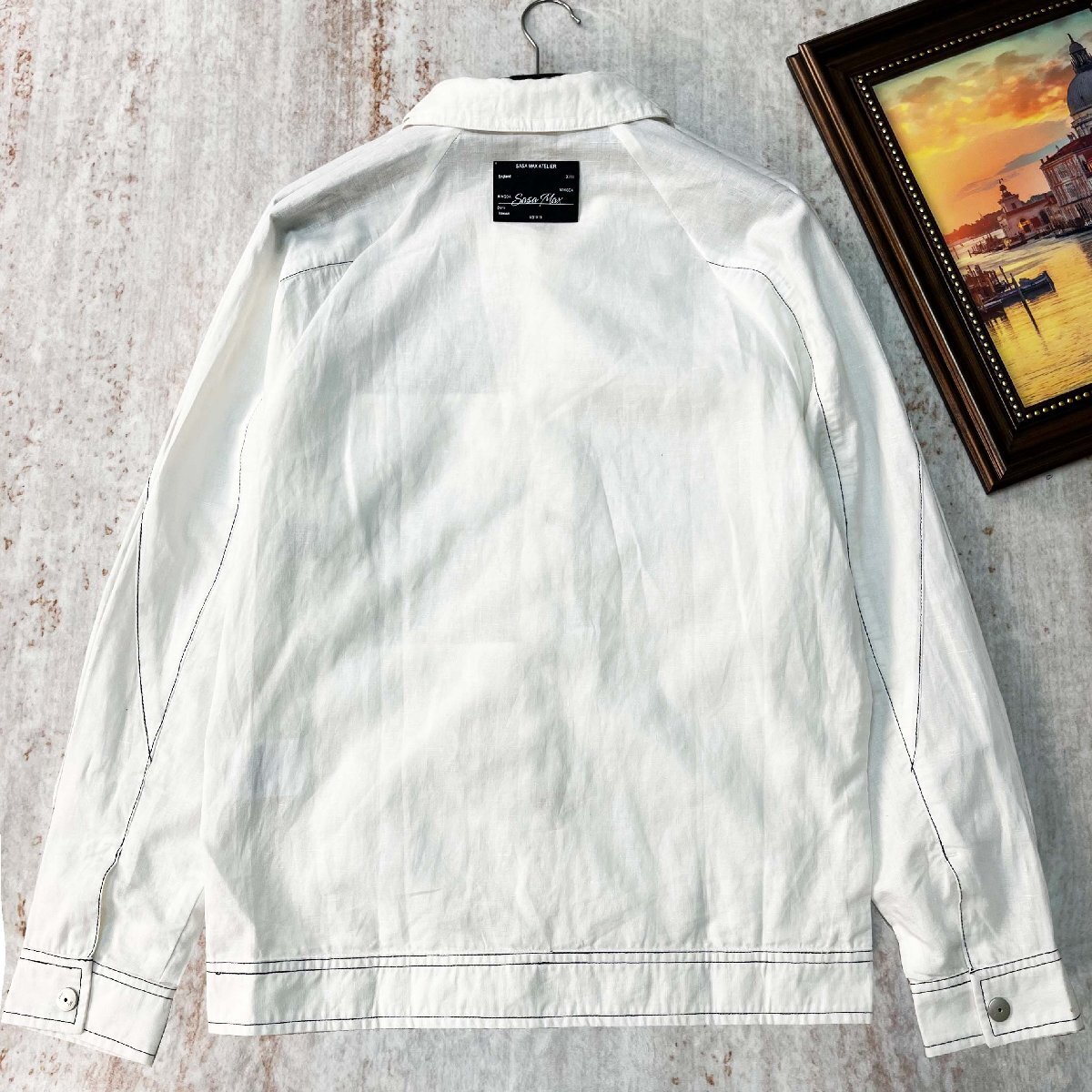 一枚限定 ジャケット ロンドン製造 リネン混 柔らか 通気 ゆったり シンプル 折り襟 トップス アウター ブルゾン コート 日常 春秋 SIZE:L