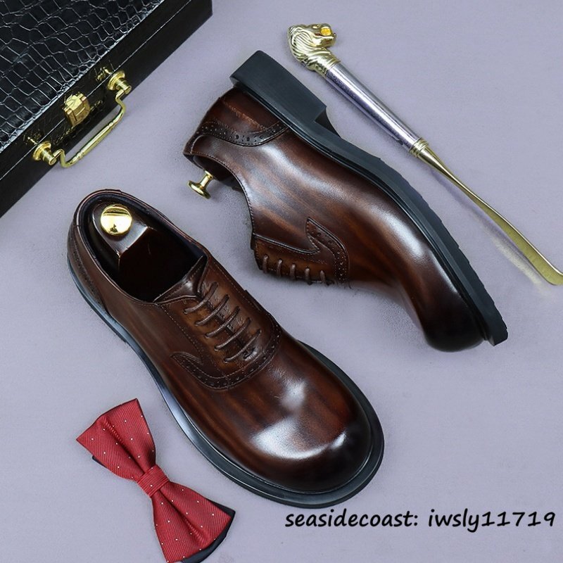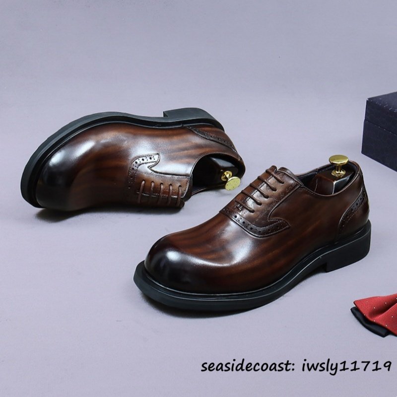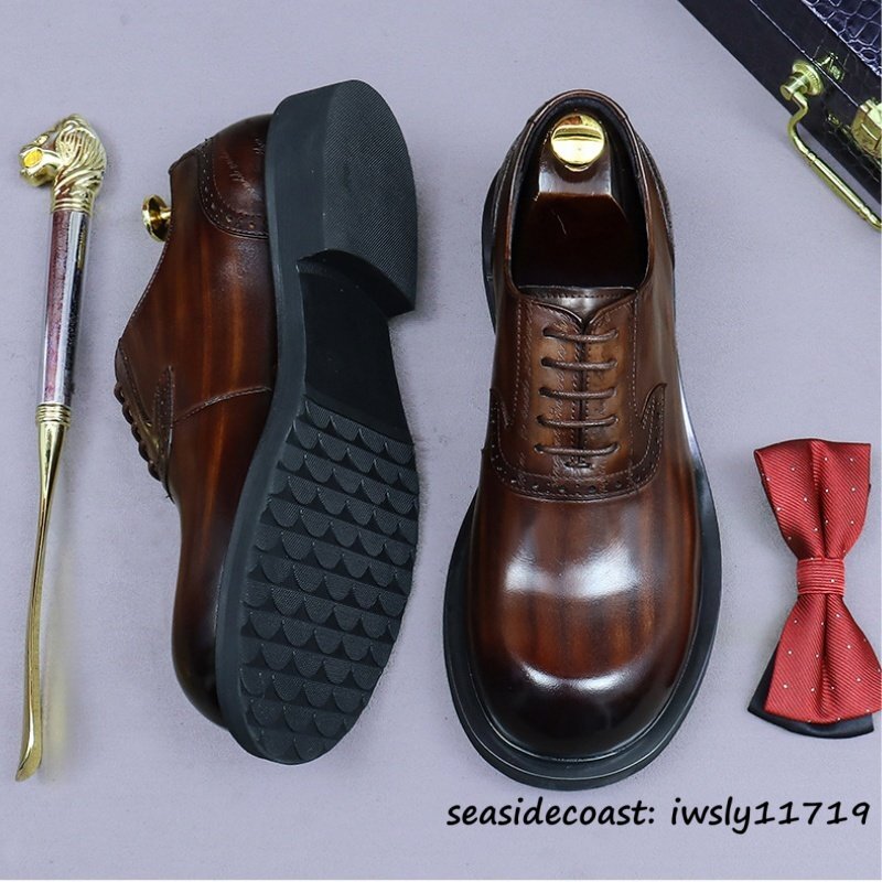 最上級◆定価10万 本革 ビジネスシューズ メンズ 本牛革 レザーシューズ 職人手作り 彫り 紳士靴 厚底 イギリス風 冠婚葬祭 珈琲色 26.0cm