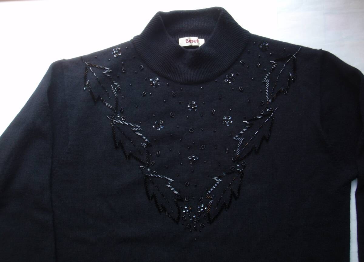 手刺繍  黒ニット 市販のセーターに手刺繍 L