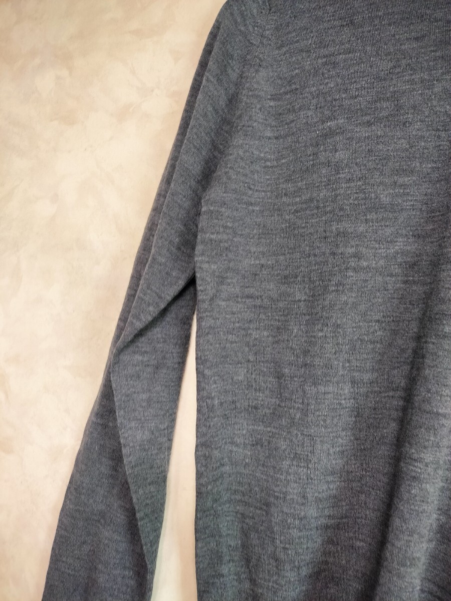 コンディション 薄い毛玉汚れ、背部穴あきあり。