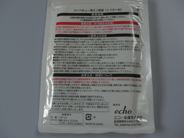 ミニ鉄板のサイズは8.4cm×13.2cmです。
