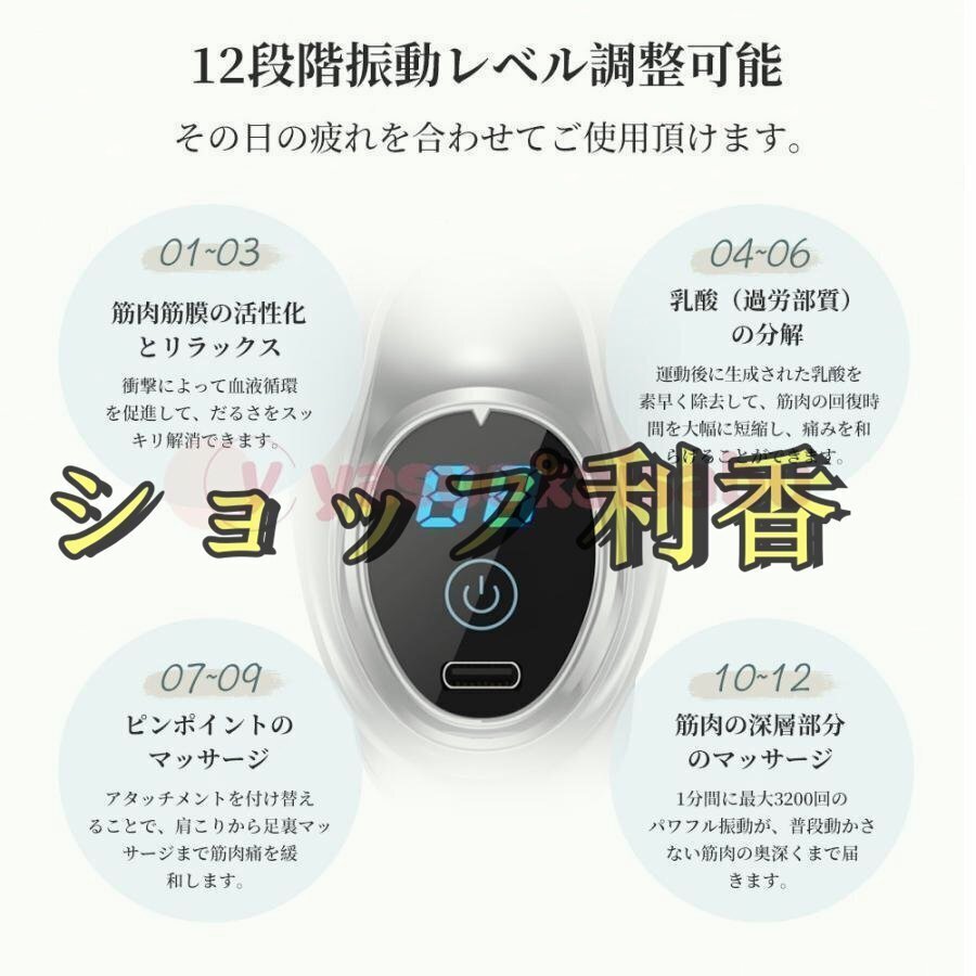 商品説明 商品説明 【商品仕様】商品名:筋膜リリースサイズ:12*15.5cm本体質量:460g(振動ヘッド無し)素材:本体:ABS+PC マッサージヘッド:発泡スチロール充電時間:約4時間連続運転時間:約2時間パッテリー容量:1800mAh付属品:マッサージヘッドx4、USBケーブルx1、