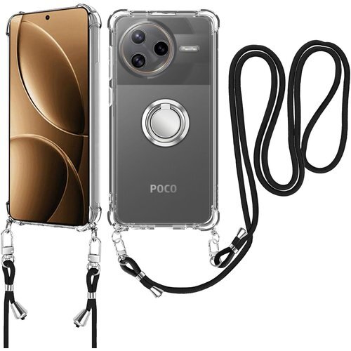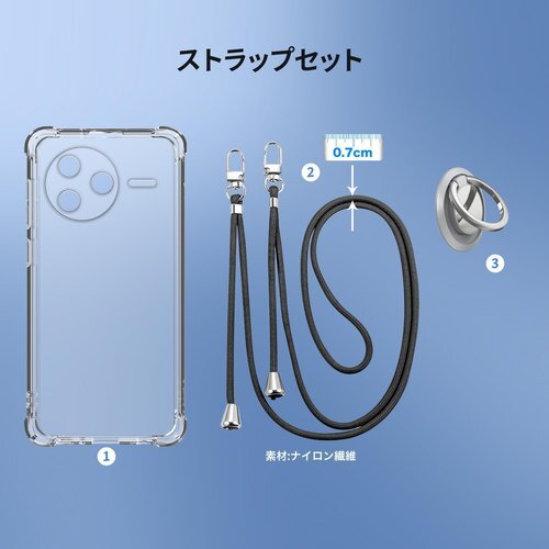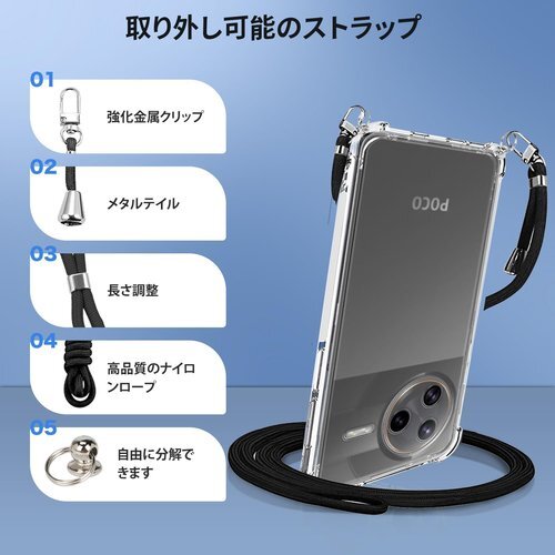 Xiaomi POCO F7 Pro 5G 用 ケース 肩掛け スマホケース 斜めがけ 織りストラップ付き 縄掛けケース HUKWIMO 調節可能なショルダー クリア ショルダー 薄型 耐衝撃 紐付き 落下防止 ファッションデザイン 柔軟で変形しない クリア 透明 497