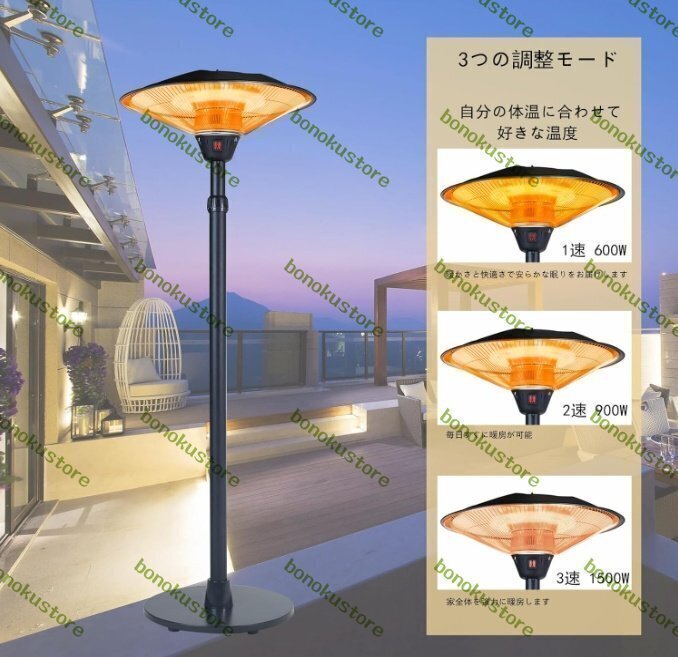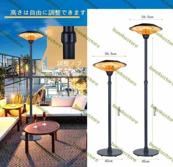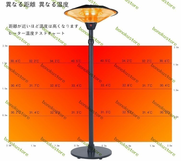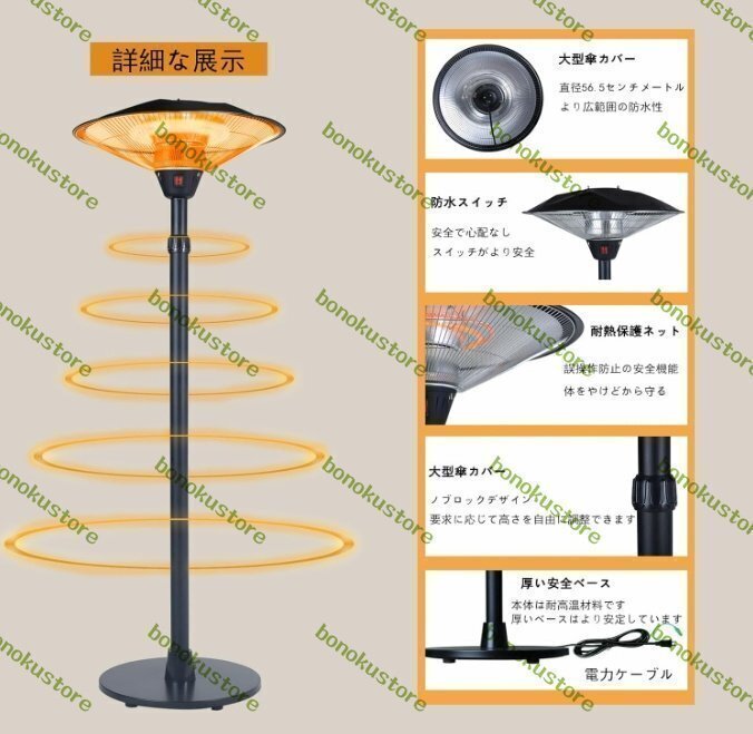 この商品について【3秒の高速加熱】:赤外線ヒーターに加熱要素はハロゲンランプチューブを使用しており、3秒で暖かくなります! リフレクターを通して熱を最後まで反射し、空気を加熱し、隅々まで暖め、より広い範囲を持ちます。【IP44防水定格】: 屋外ヒーターはパティオで