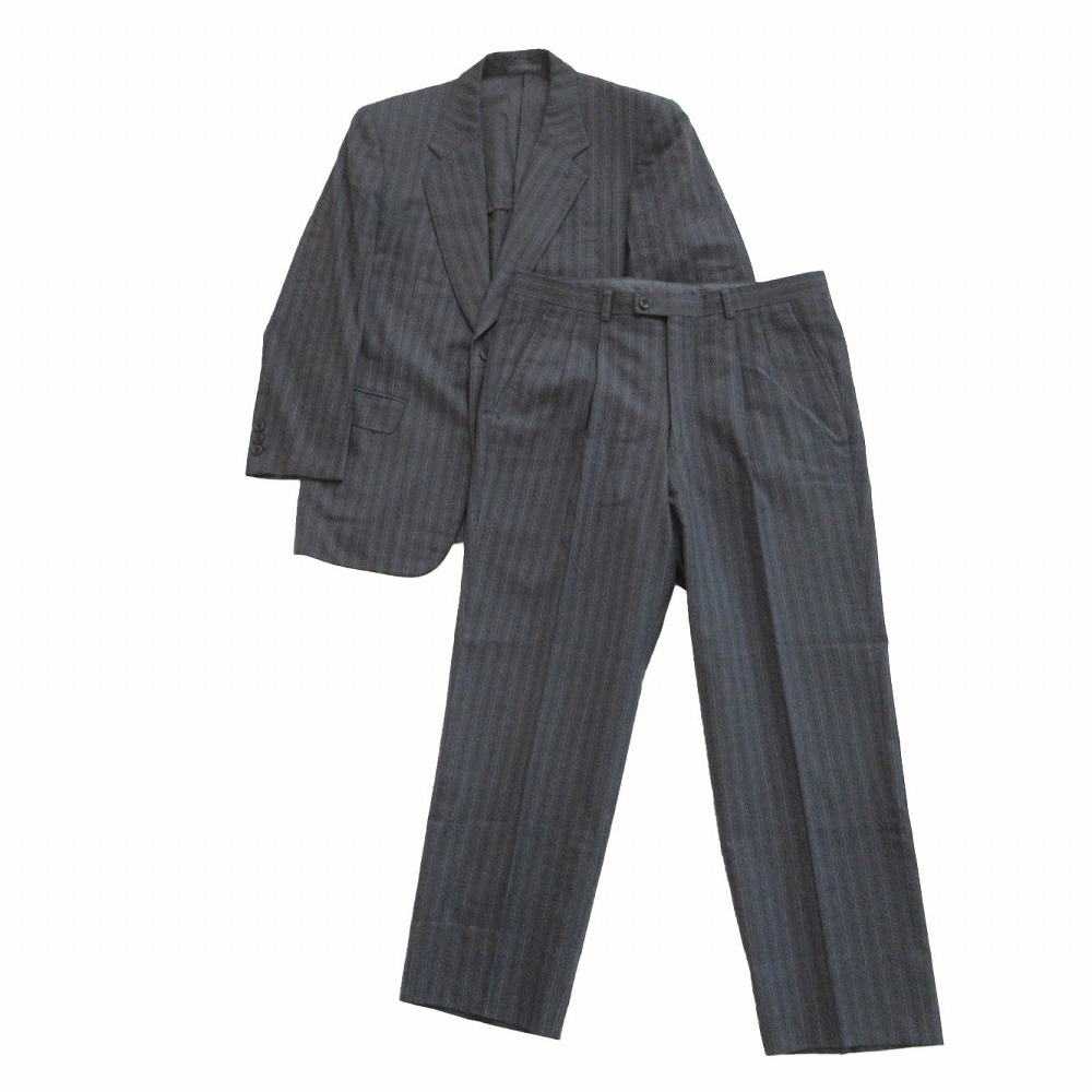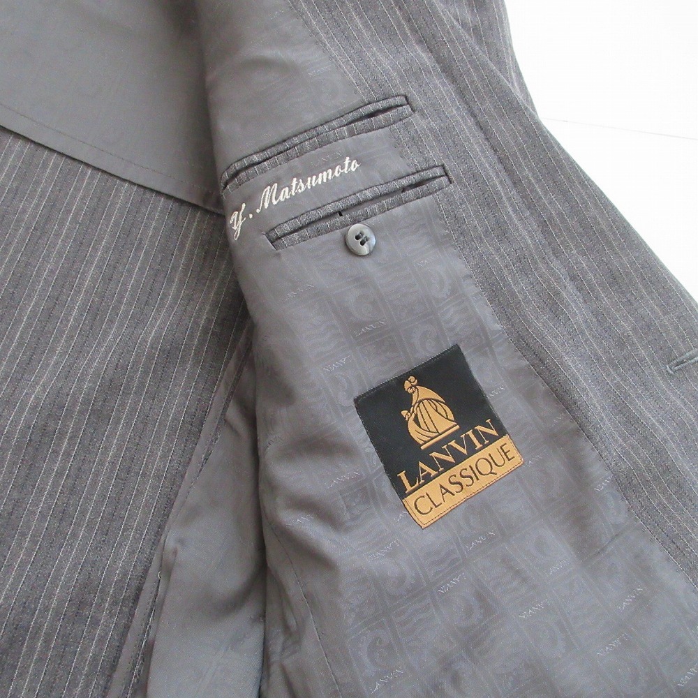 | 【LANVIN CLASSIQUE ランバン クラシック ストライプ柄 スーツセットアップ ロゴ裏地 サイズM グレー メンズ】 | |