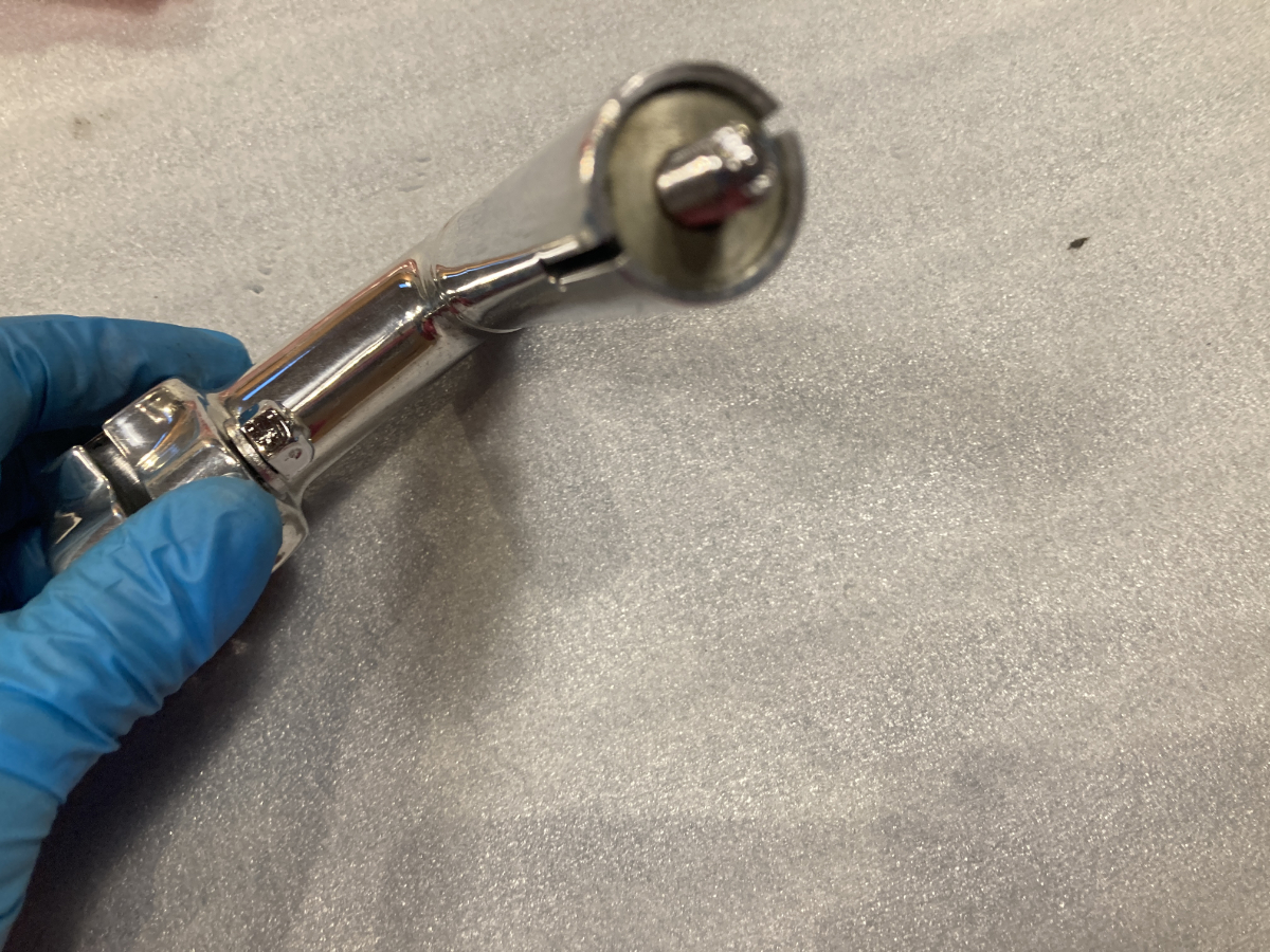 中古のステムです。メッキが厚くメーカー名が上手く読めませんが、たぶん「FIAMME」ではないかと。