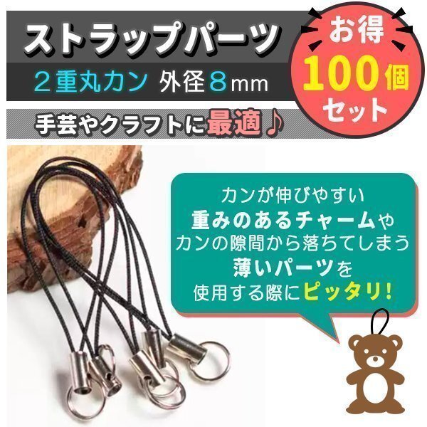 ストラップパーツ 2重丸カン 外径8mm お得な100本セット