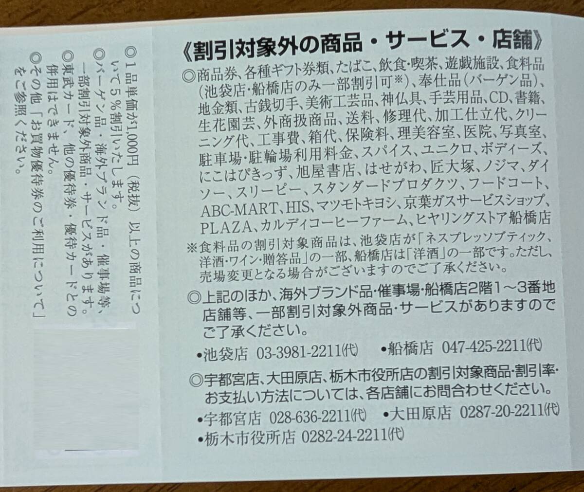 東武カード、他の優待券・優待カードとの併用は出来ません。