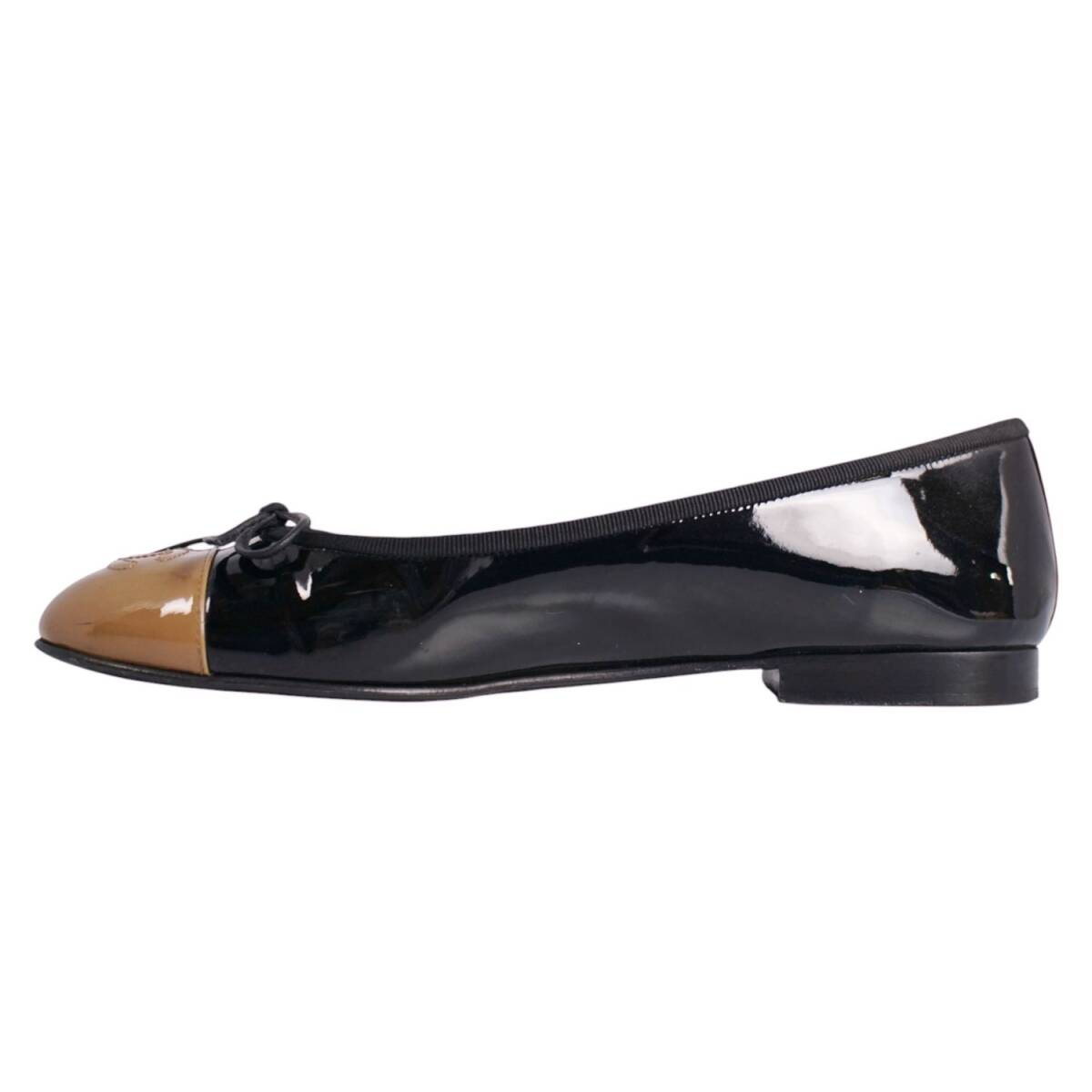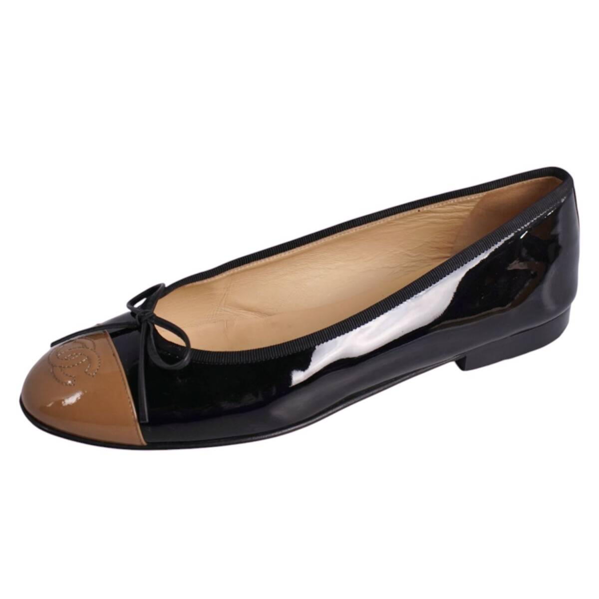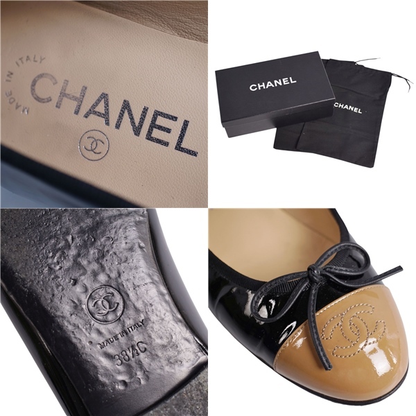 | 美品 シャネル CHANEL パンプス バレリーナ G02819 リボン ココマーク エナメルレザー シューズ 38.5C ブラック |