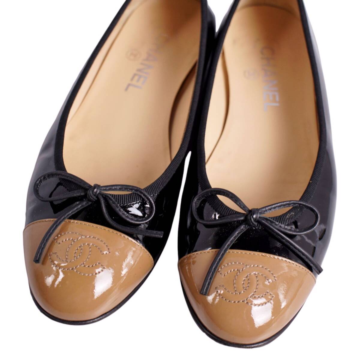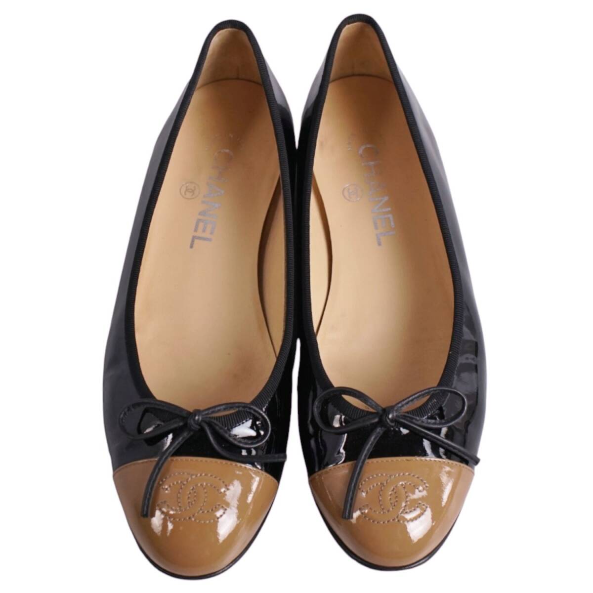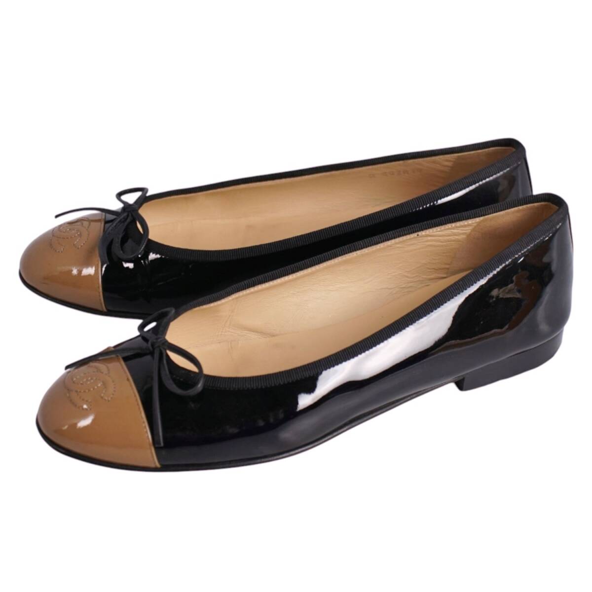 | 美品 シャネル CHANEL パンプス バレリーナ G02819 リボン ココマーク エナメルレザー シューズ 38.5C ブラック |