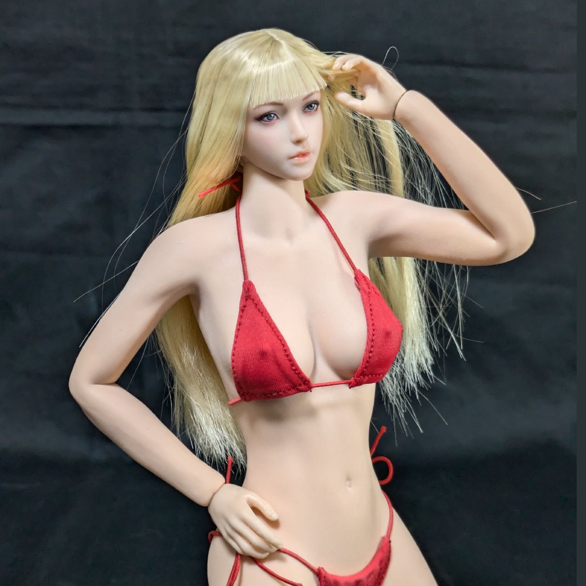 ◆ シームレスソフトボディ【 金髪美女 カスタムドール】赤ビキニ付属◆1/6スケール◆パツ金◆完成品フィギュア◆水着◆海外限定◆