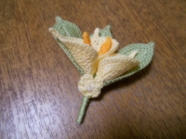 レース編み:ハンドメイド:カラーのブローチ(未使用)