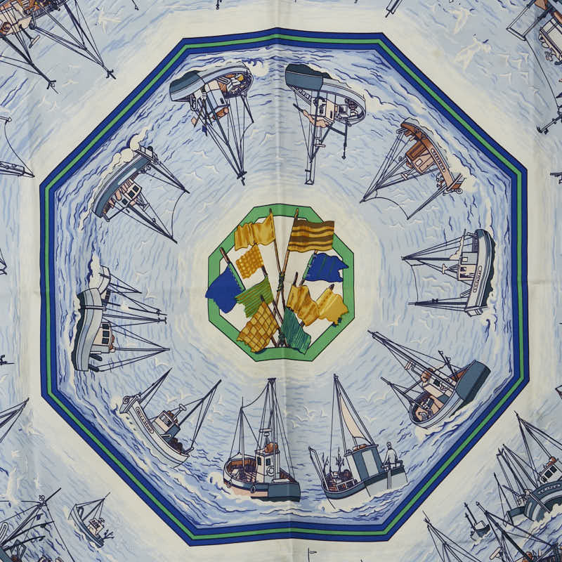 エルメス カレ90 RETOUR DE PECHE 漁船の帰港 スカーフ ブルー グリーン マルチカラー シルク レディース HERMES 【中古】