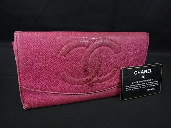 CHANEL シャネル ココマーク キャビアスキン 二つ折り 長財布 ウォレット 札入れ 小銭入れ レディース パープル系 DK7759