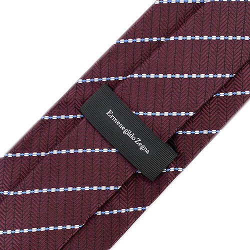 未使用 ゼニア ブランド ネクタイ エルメネジルド・ゼニア 高級 シルク 100% ストライプ ボルドー ワインレッド バーガンディー 赤系