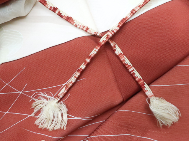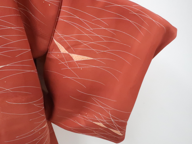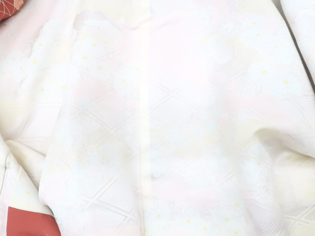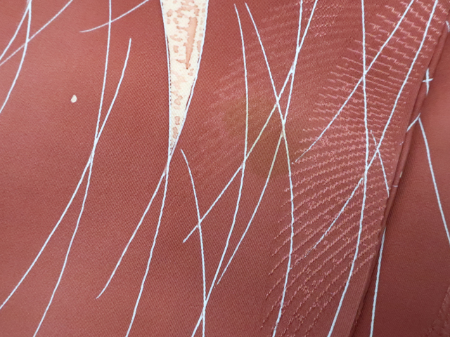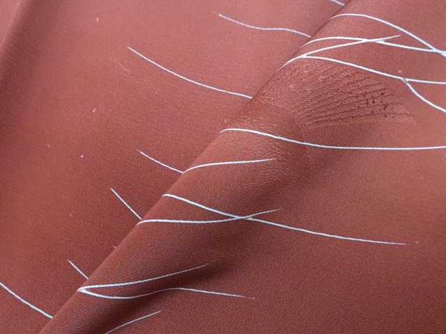 リサイクル商品のため、両袖にしみがございますが着用可能なお品です。 地色は薄赤です。 1枚目の画像が近いお色かと思われます。 素材は正絹です。 |