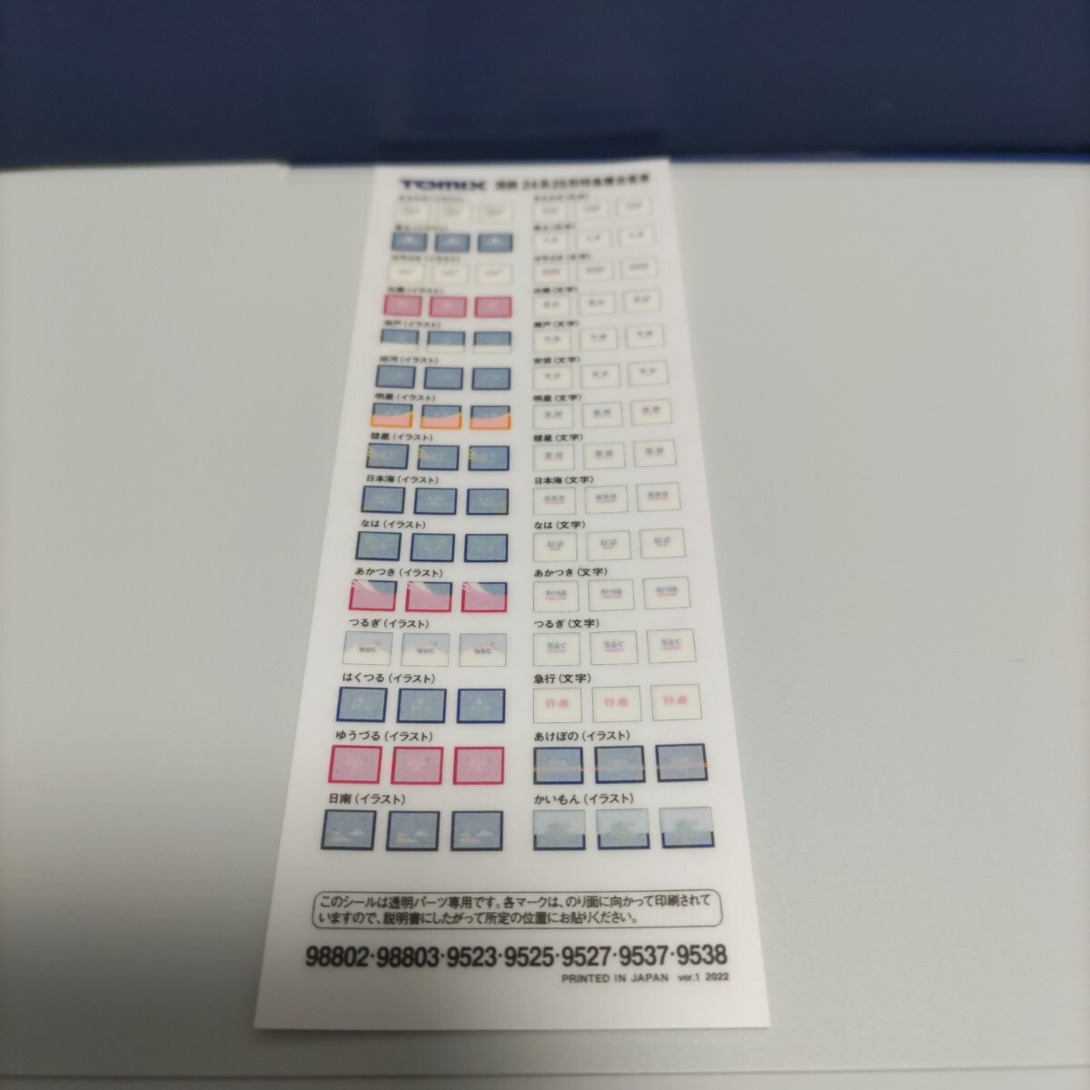 TOMIX 9538 国鉄客車 カニ24-100形(銀帯)バラシ トレインマーク・転写シート・取扱説明書 トミックス 24系 インレタ